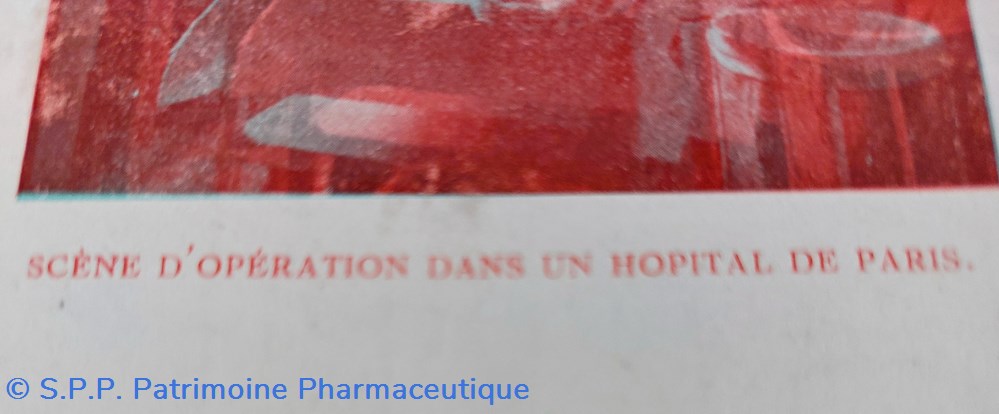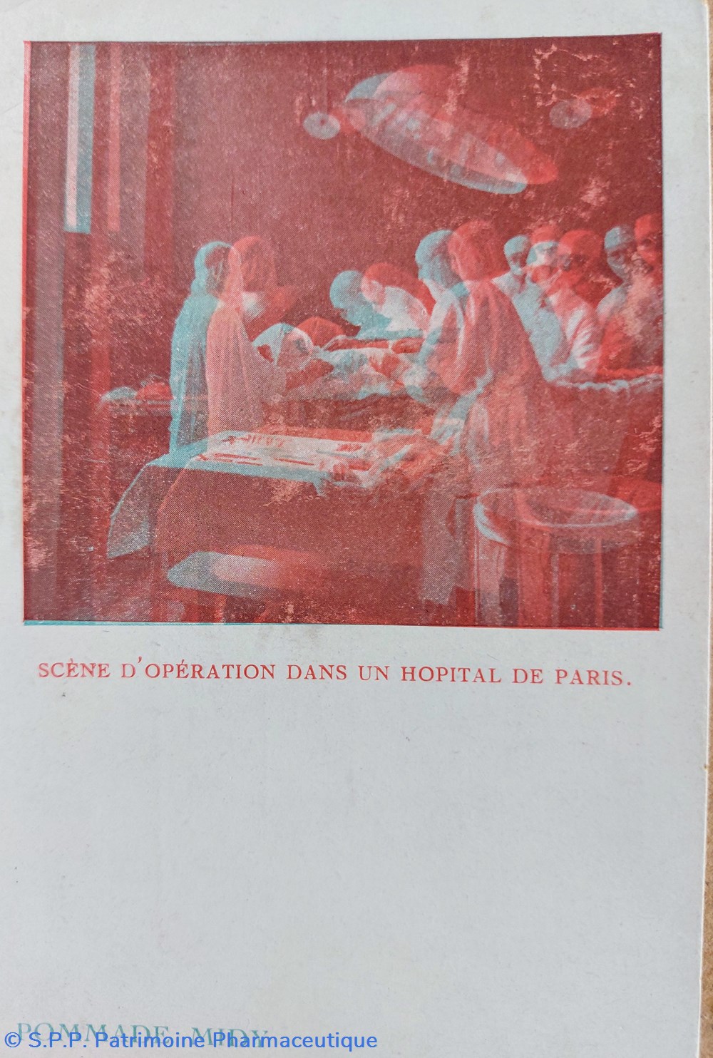 Recto : " Scène dopération dans un Hôpital de Paris " Photographie avec effet graphique et impression de relief. Technique Lomochrome ?