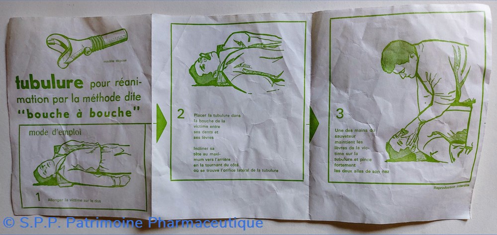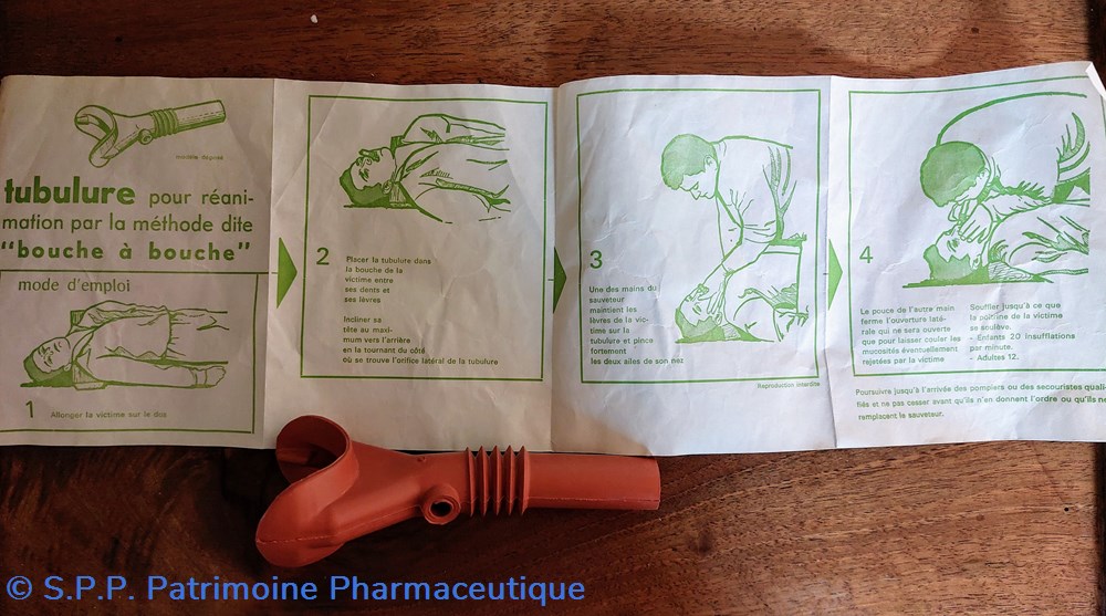 Dans un sachet en plastique Un accessoire en caoutchouc pour réanimer par la méthode dite de " bouche à bouche"