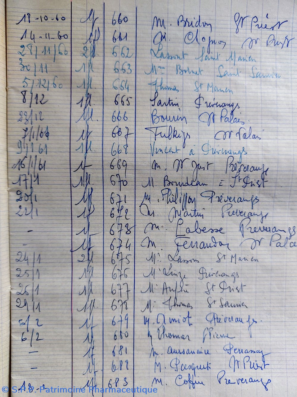 Cahier entamé le 14 juin 1955 arrêté le 31 mai 1966 soit 11 ans d'enregistrements et 1523 délivrances.