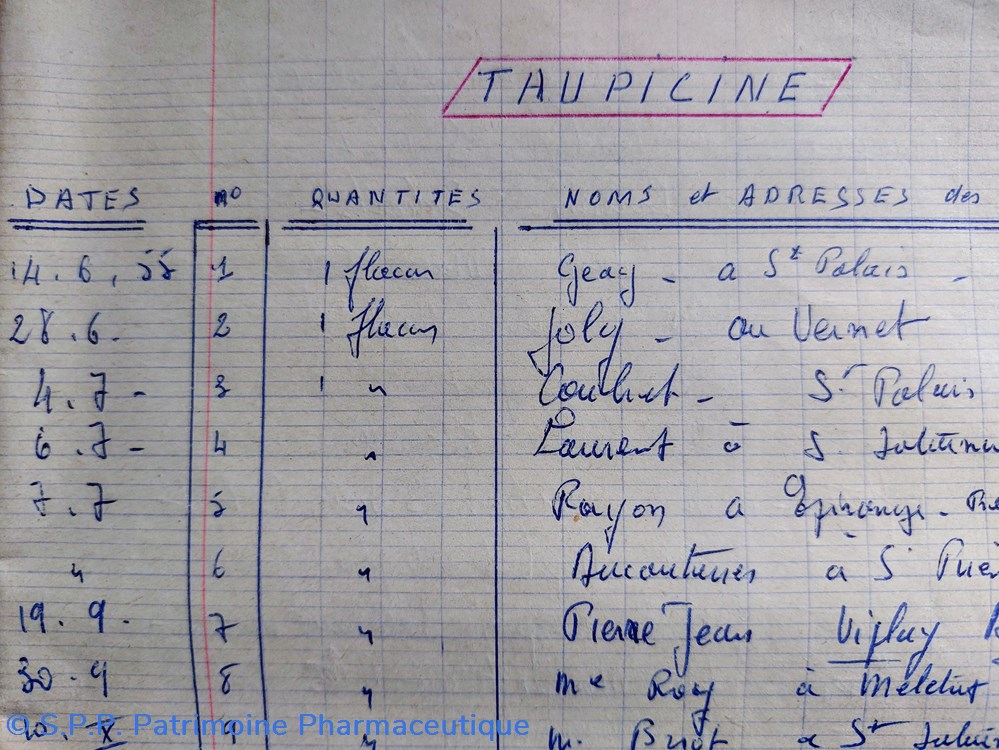 Cahier d'enregistrement de la délivrance de TAUPICINE