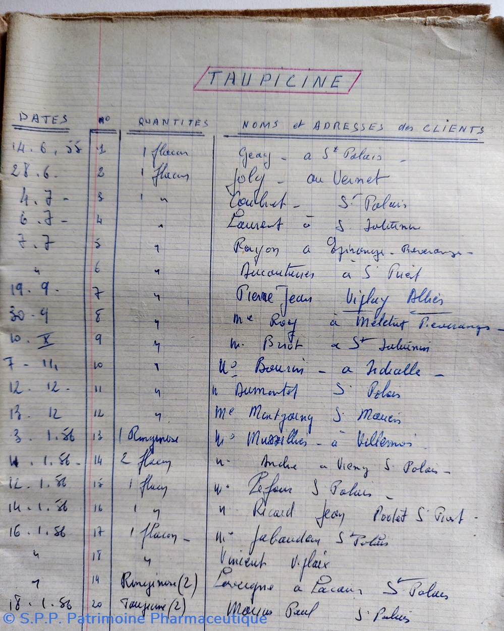 Taupicine ordonnancier 1955- 1966