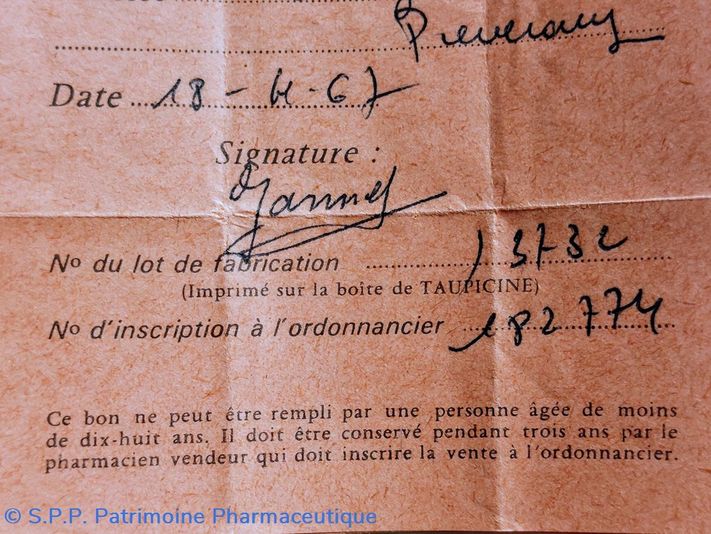 Ces bons devaient être conservés pendant 3 ans par le pharmacien vendeur qui devait inscrire la vente dans son ordonnancier