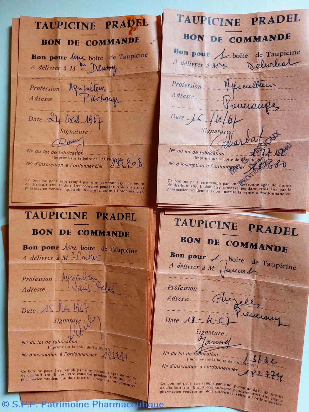 Bons de commande datant de l'année 1967