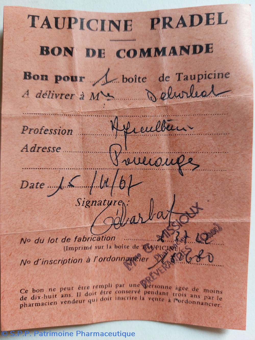 Taupicine Pradel Bons de commande