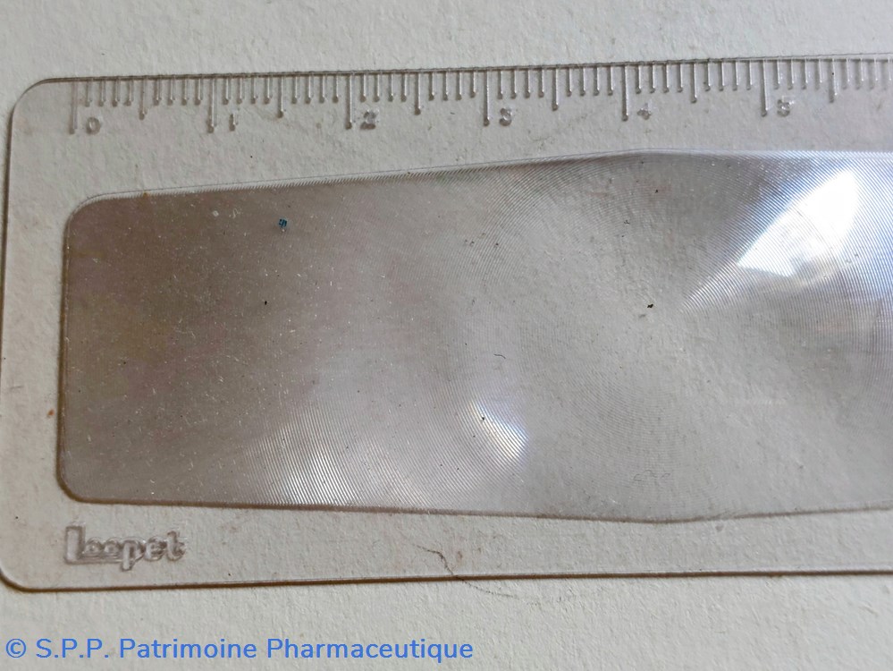 Réglette graduée de 8cm servant de règle plate et de loupe.