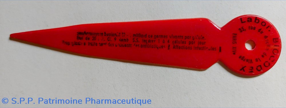 Petit coupe - papier en plastique rouge offert par 'et Laboratoire BIOCODEX à Paris