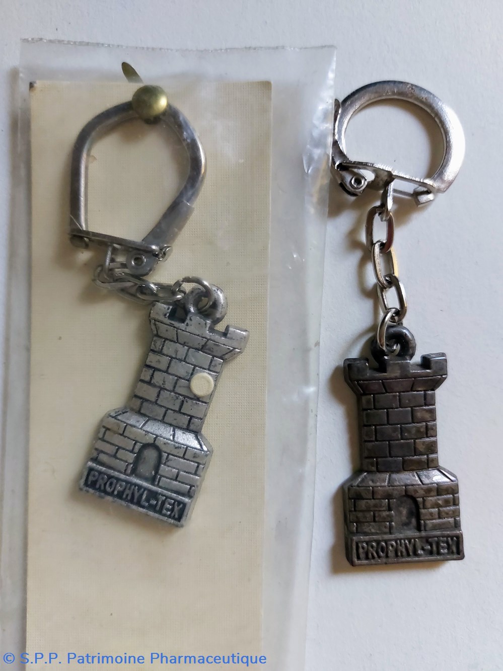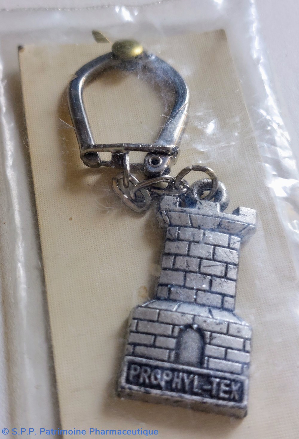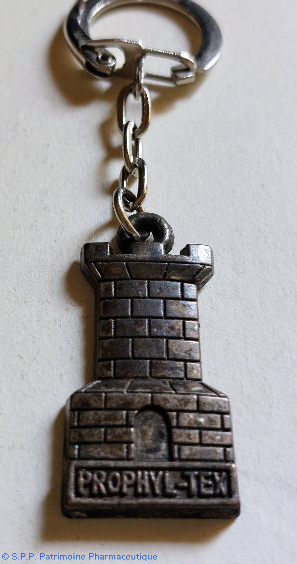 Porte - clefs portant une tour crenelée distribuée par un fournisseur de préservatifs