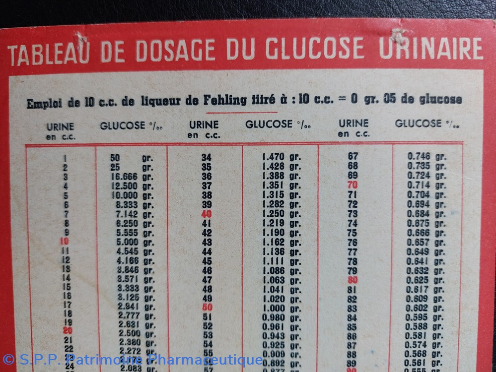Tableau de dosage du Glucose Urinaire