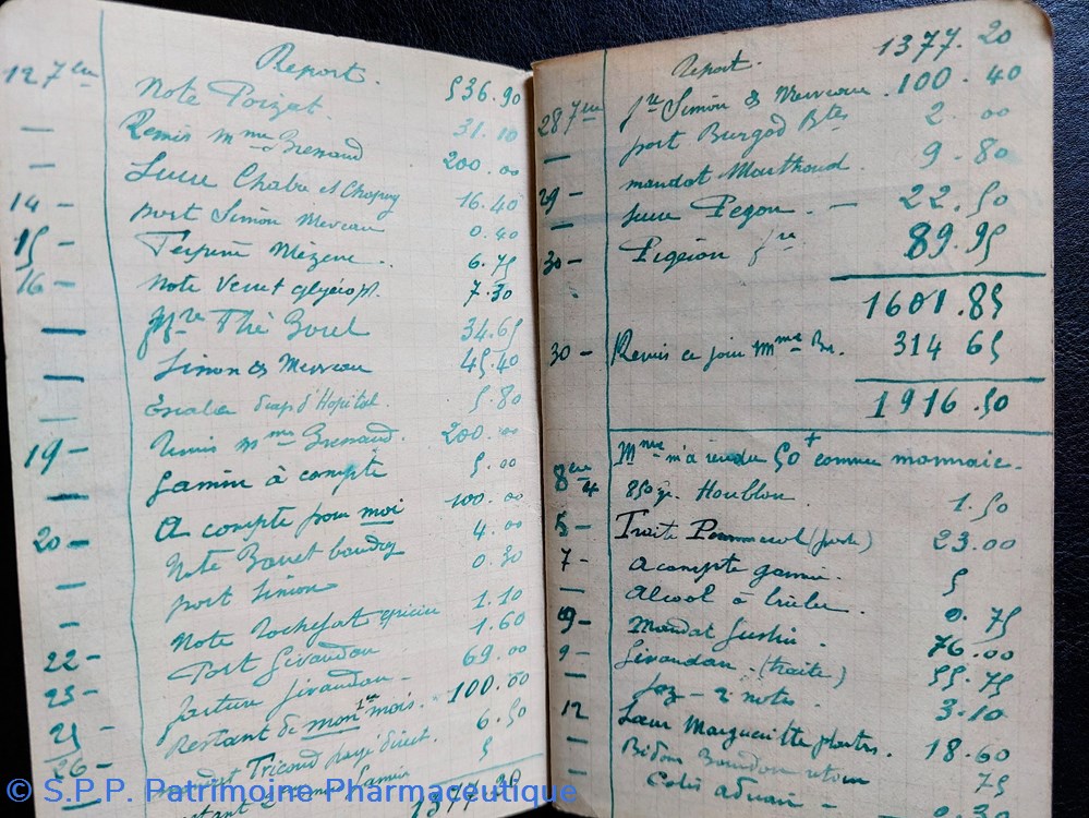 Carnet de CAISSE (Entrées et Sorties) d'une pharmacie en 1914