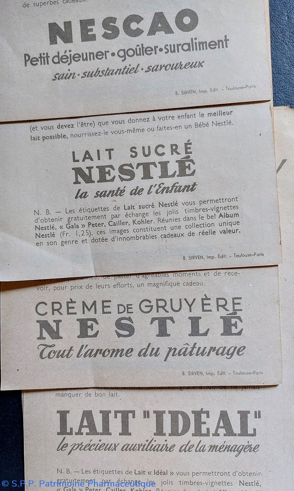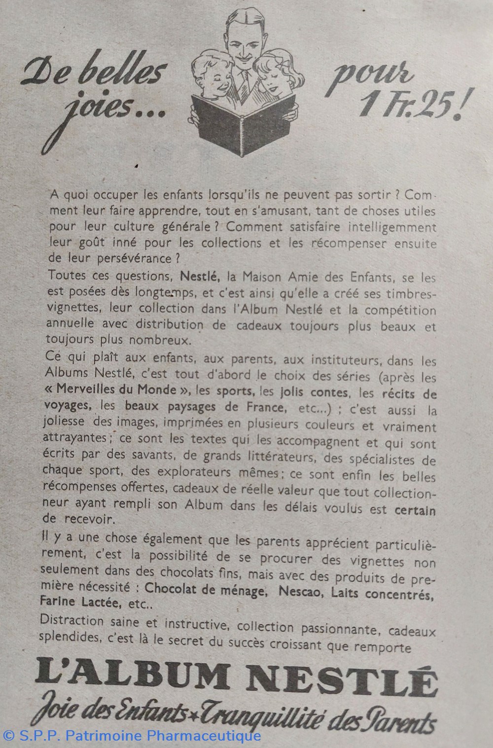 NESCAO, CHOCOLAT, CRÈME DE GRUYÈRE, LAIT, BIBERON.. et la vente d'un album pour des collections sur différents thèmes pour les enfants moi