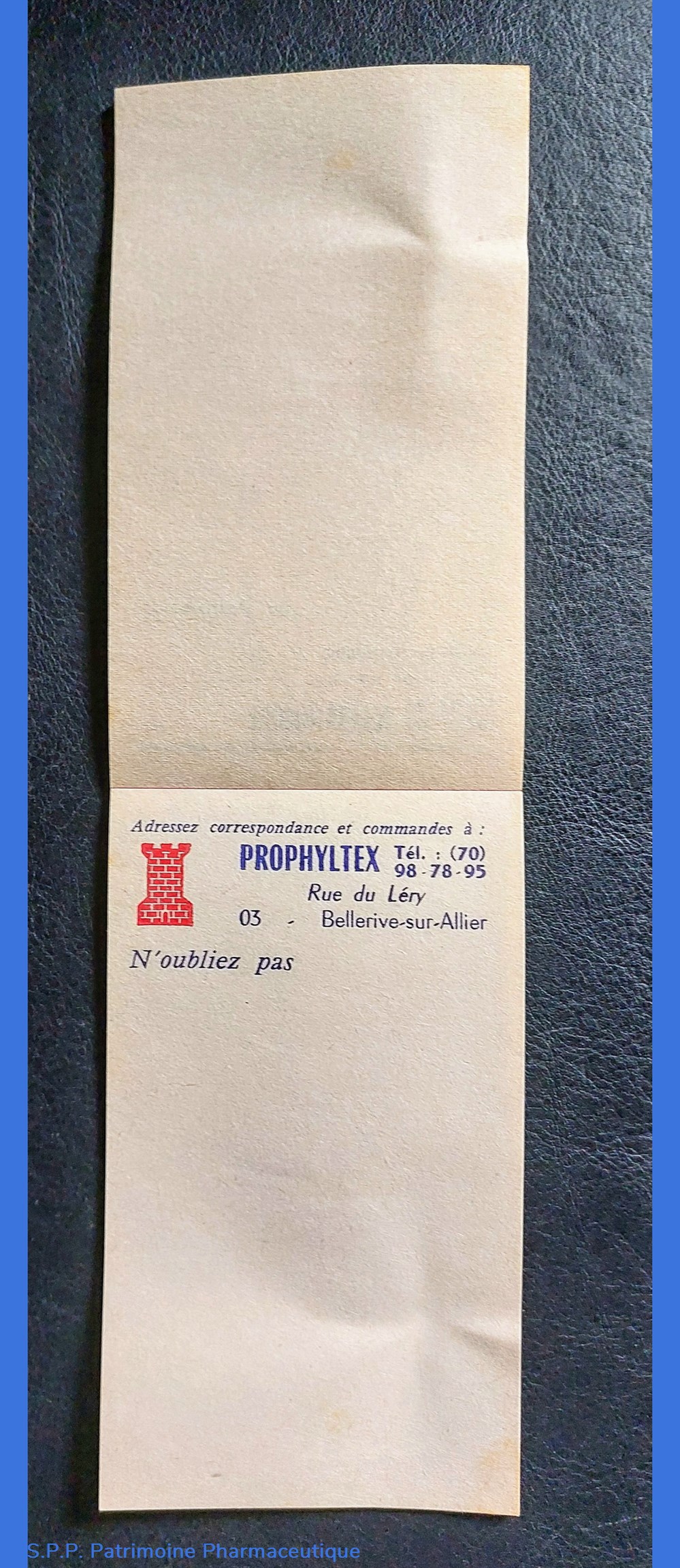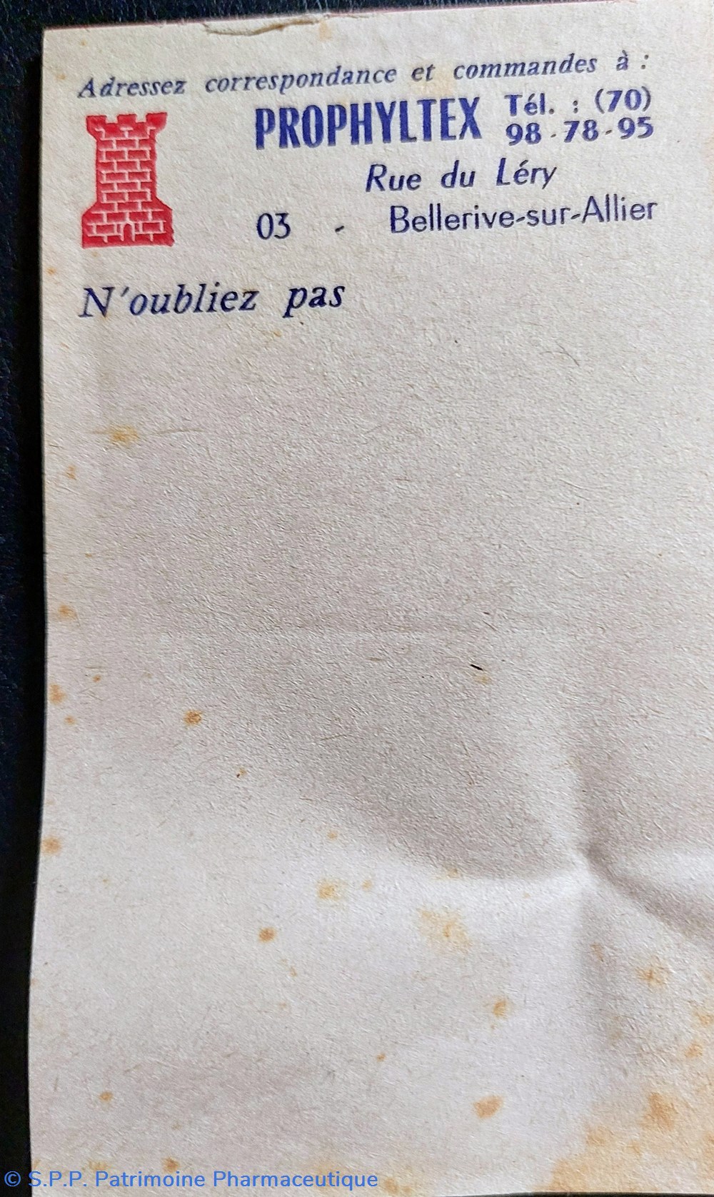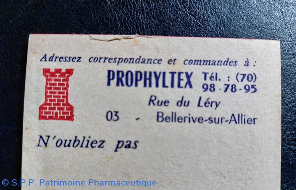 On constate la discrétion seul le nom PROPHYLTEX apparaît sur les fiches