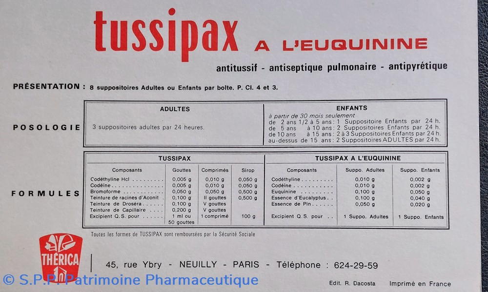 Document distribué par THÉRICA à Paris Laboratoires distribuant TUSSIPAX produits antitussifs pour adultes et enfants