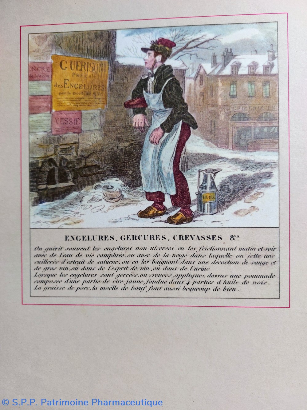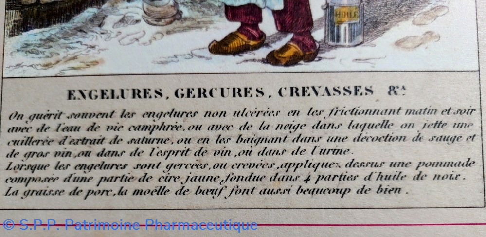 Gravure évoquant les remèdes contre engelures Gerçures, Crevasses..