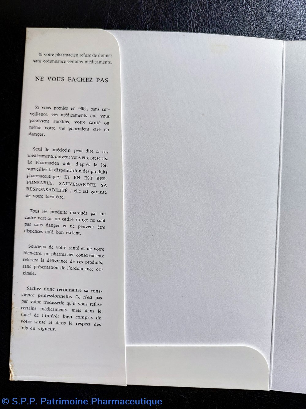 Ce "support de documents" donnait les informations utiles à la patientèle. Il était offert par le pharmacien.