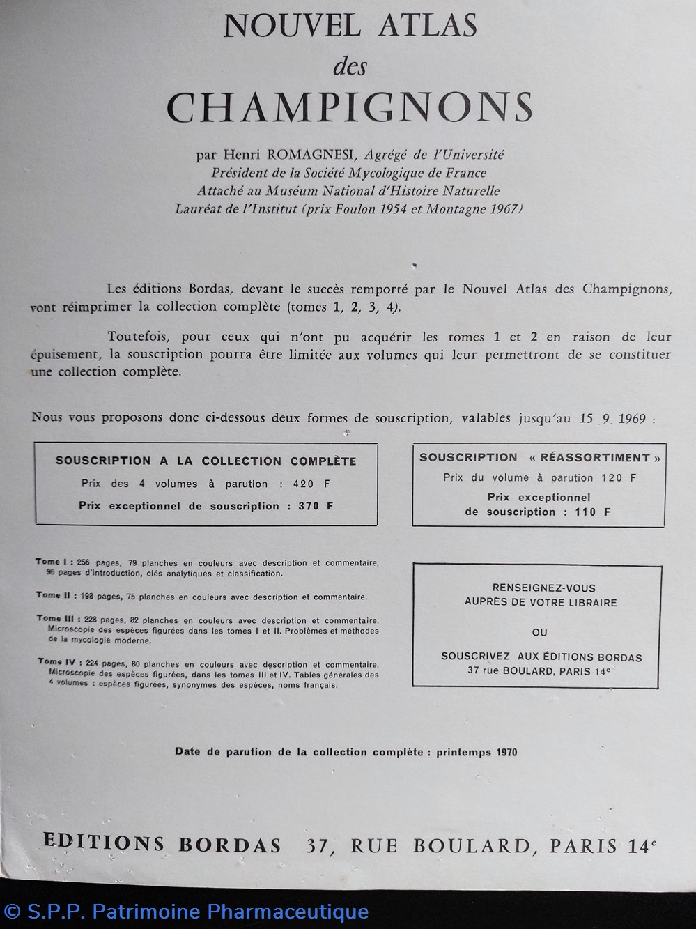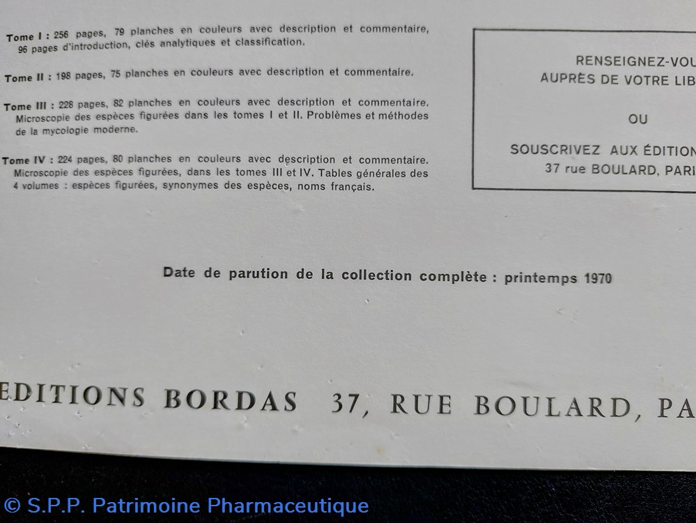 Proposition commerciale des Éditions Bordas. Extrait du Nouvel ATLAS des CHAMPIGNONS. Année 1970 en 4 volumes
