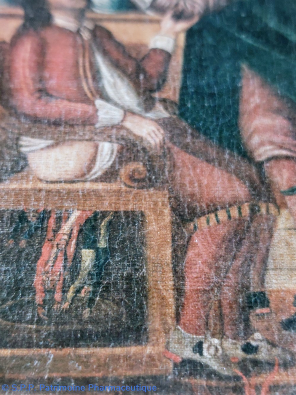 Reproduction d'un tableau École Française du XVI ou début du XVII siècle ( AUTUN Musée Rolin) (24 cm * 17.5 cm). Ce tableau aurait servi d' enseigne à la Pharmacie COSSERET Rue Chauchien à Autun .