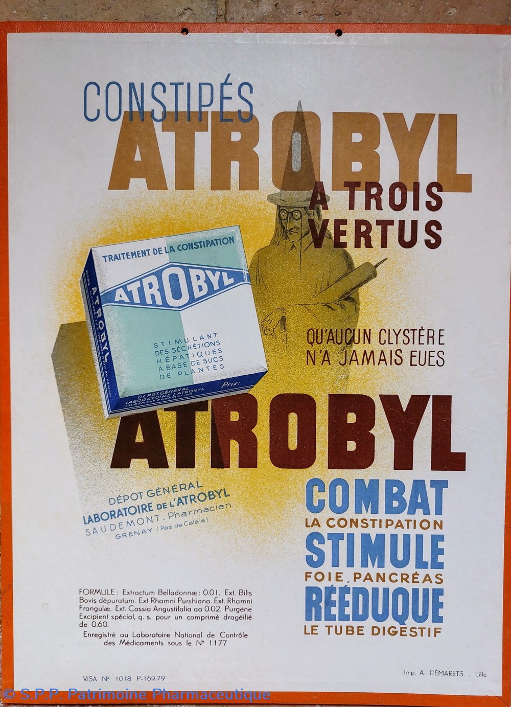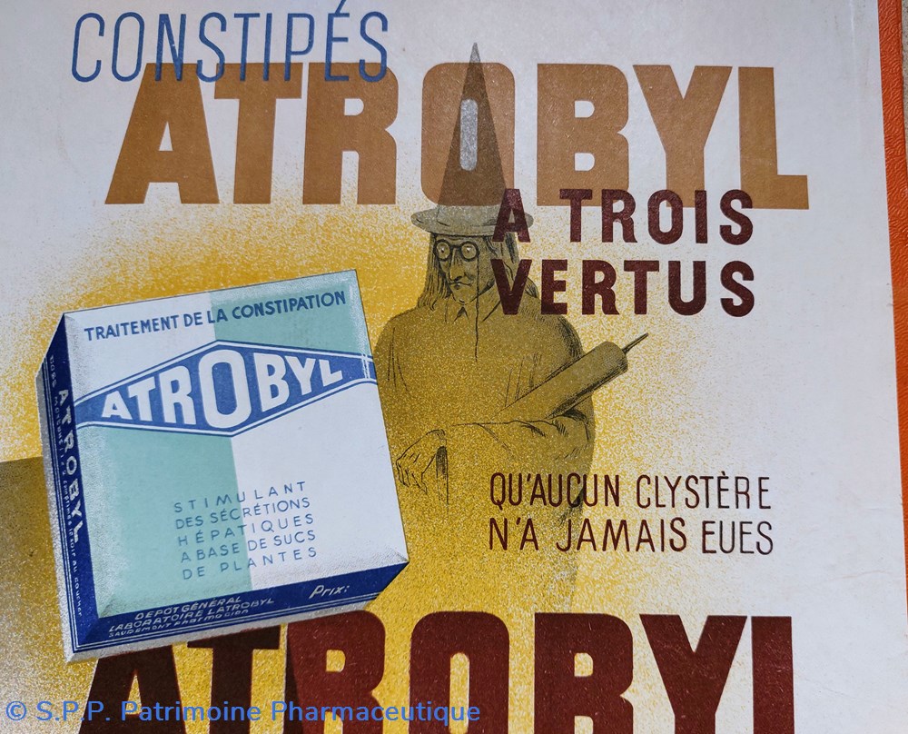 Affiche pour le traitement de la Constipation ATROBYL fournie par LE LABORATOIRE DE L'ATROBYL - Saudemont Pharmacien à la Grenay - Pas de Calais.