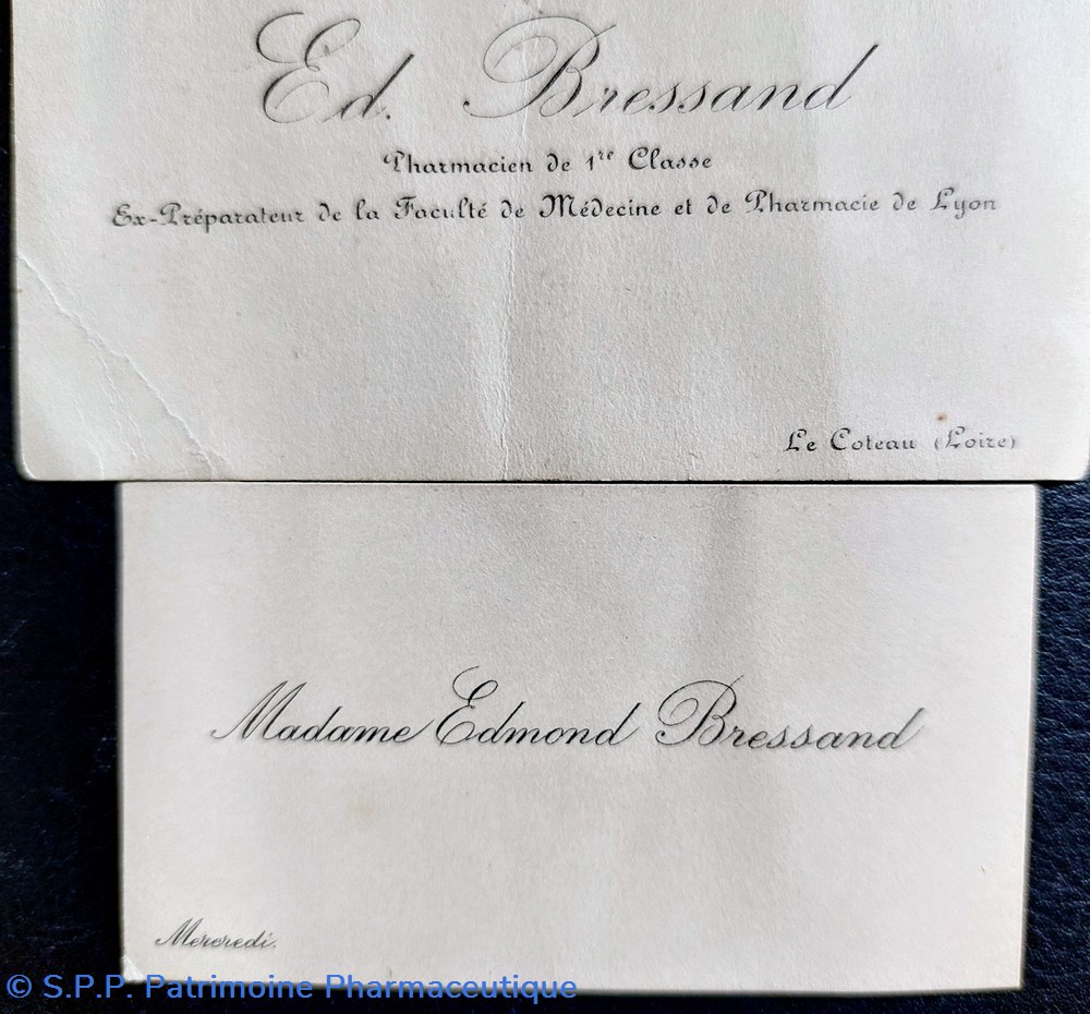 Ce garde ordonnances contient les cartes de visite des époux BRESSAND.