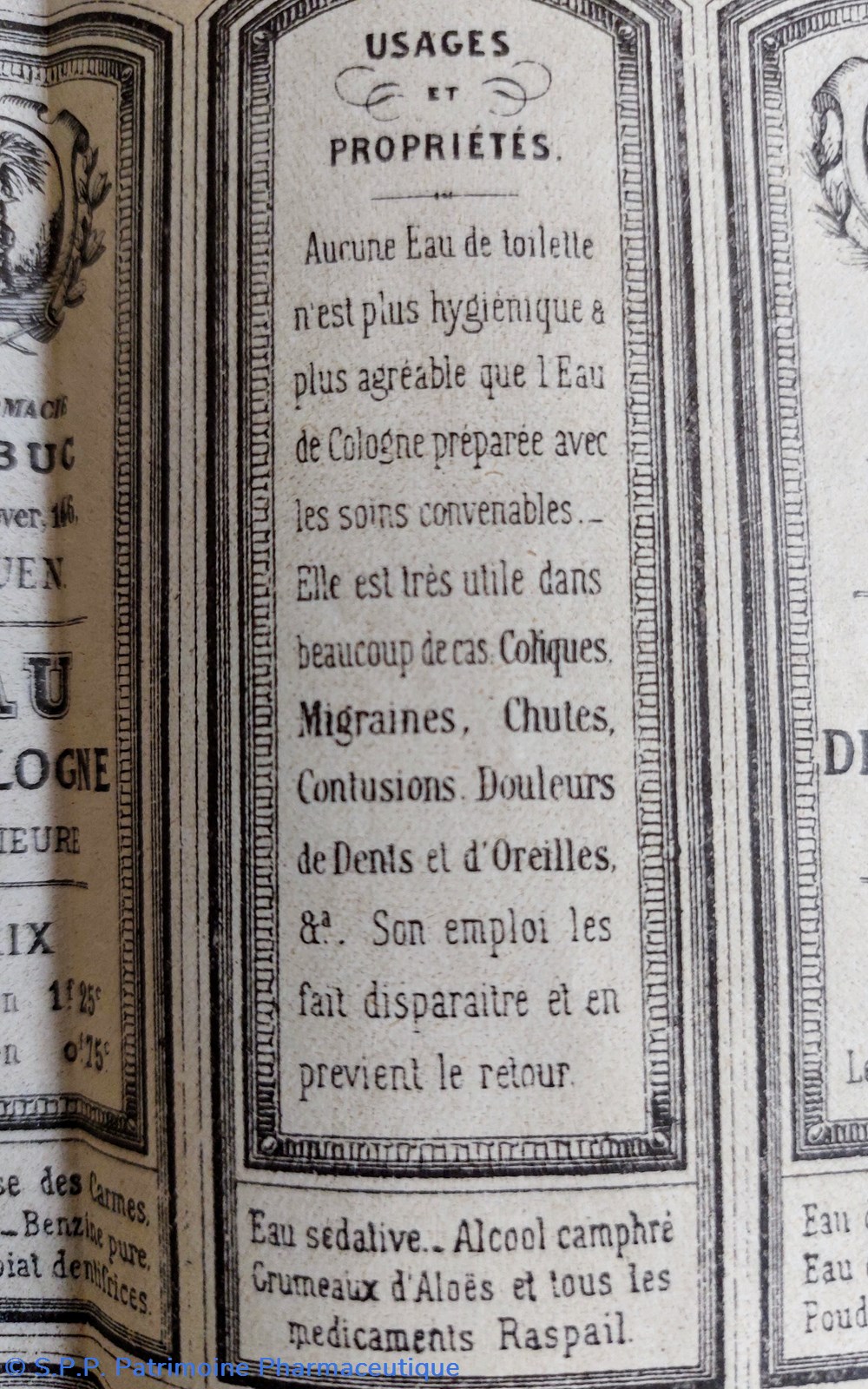 Formule : Eau de Mélisse des Carmes Eau de Botot, Benzine pure Poudre et Opiat dentifrice