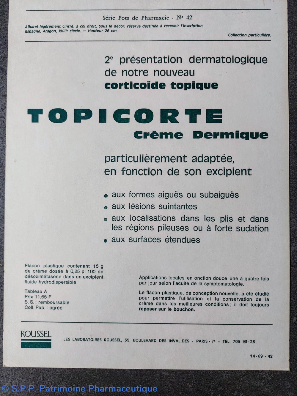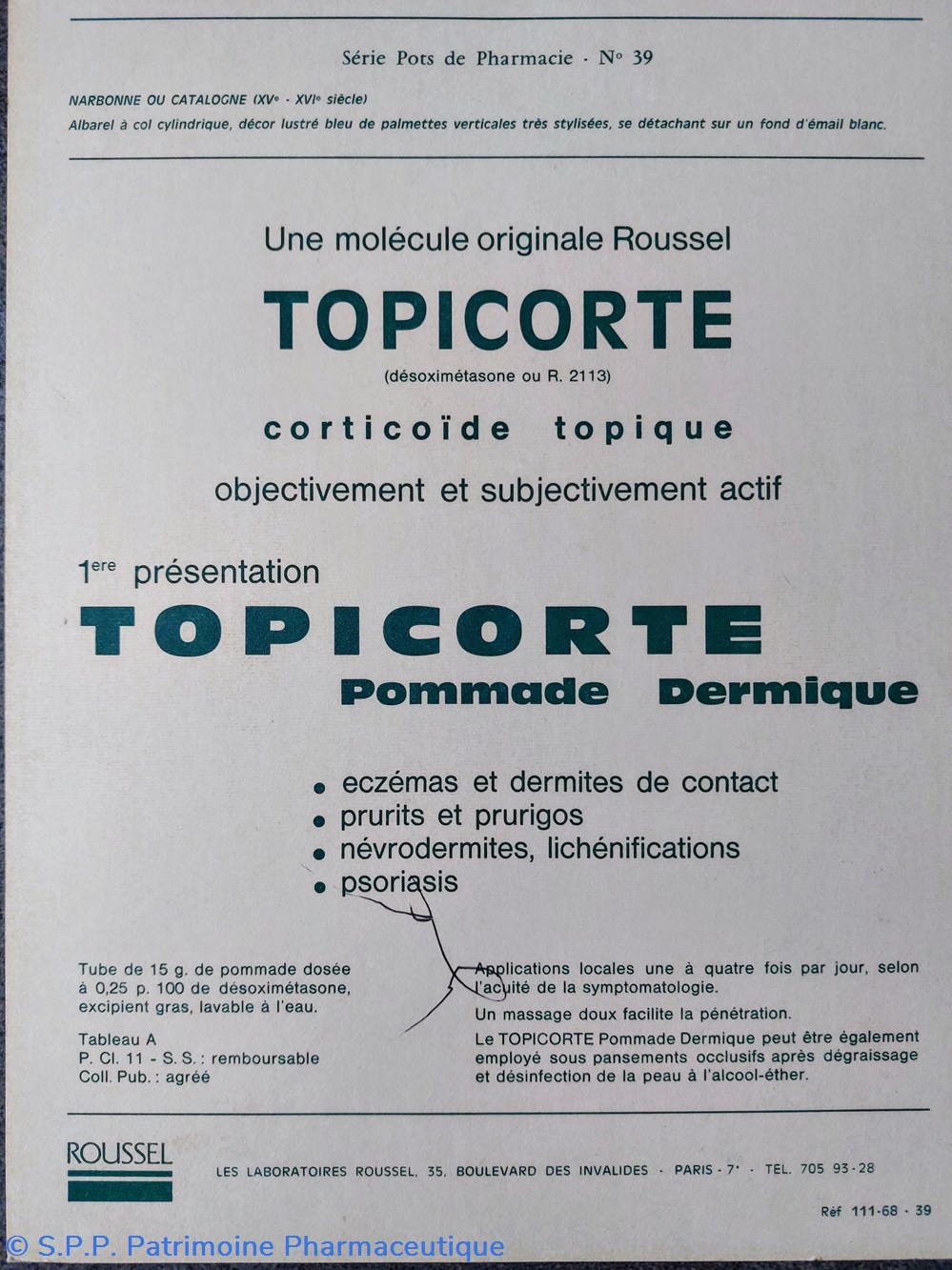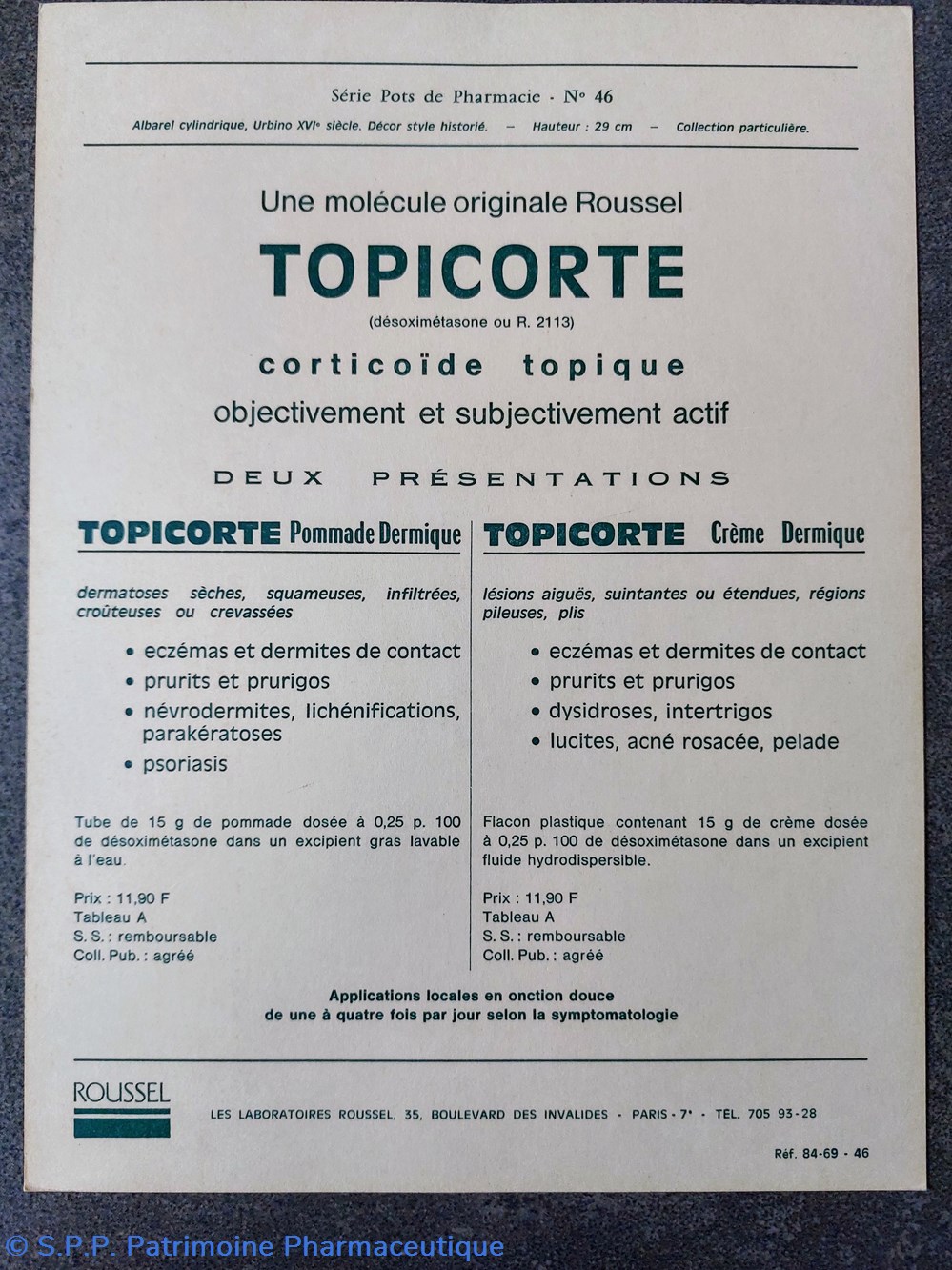 Au VERSO : Désignation précise des vases et présentation d'un ou plusieurs produits des Laboratoires ROUSSEL avec indications et formules. Parmi les produits :