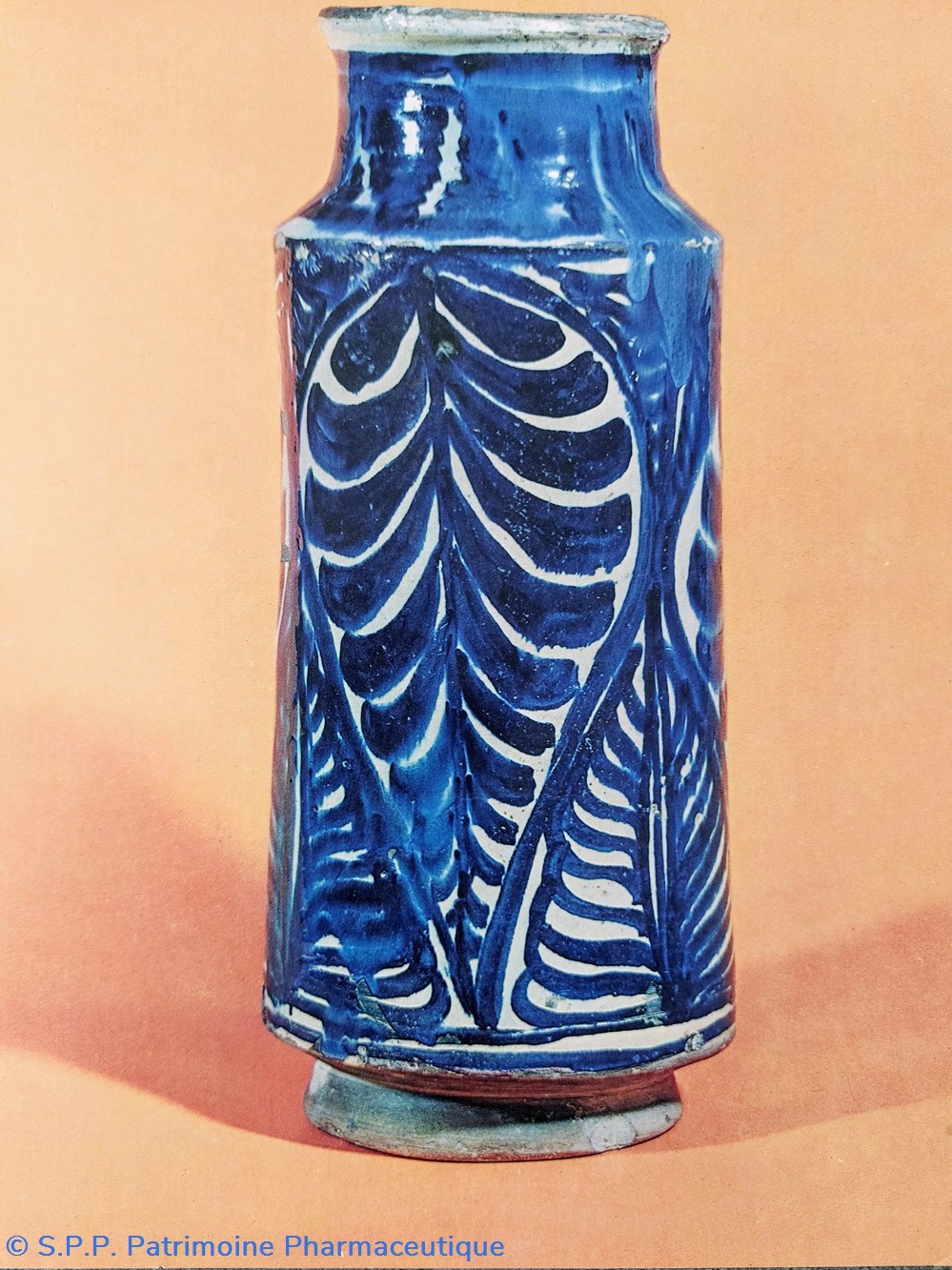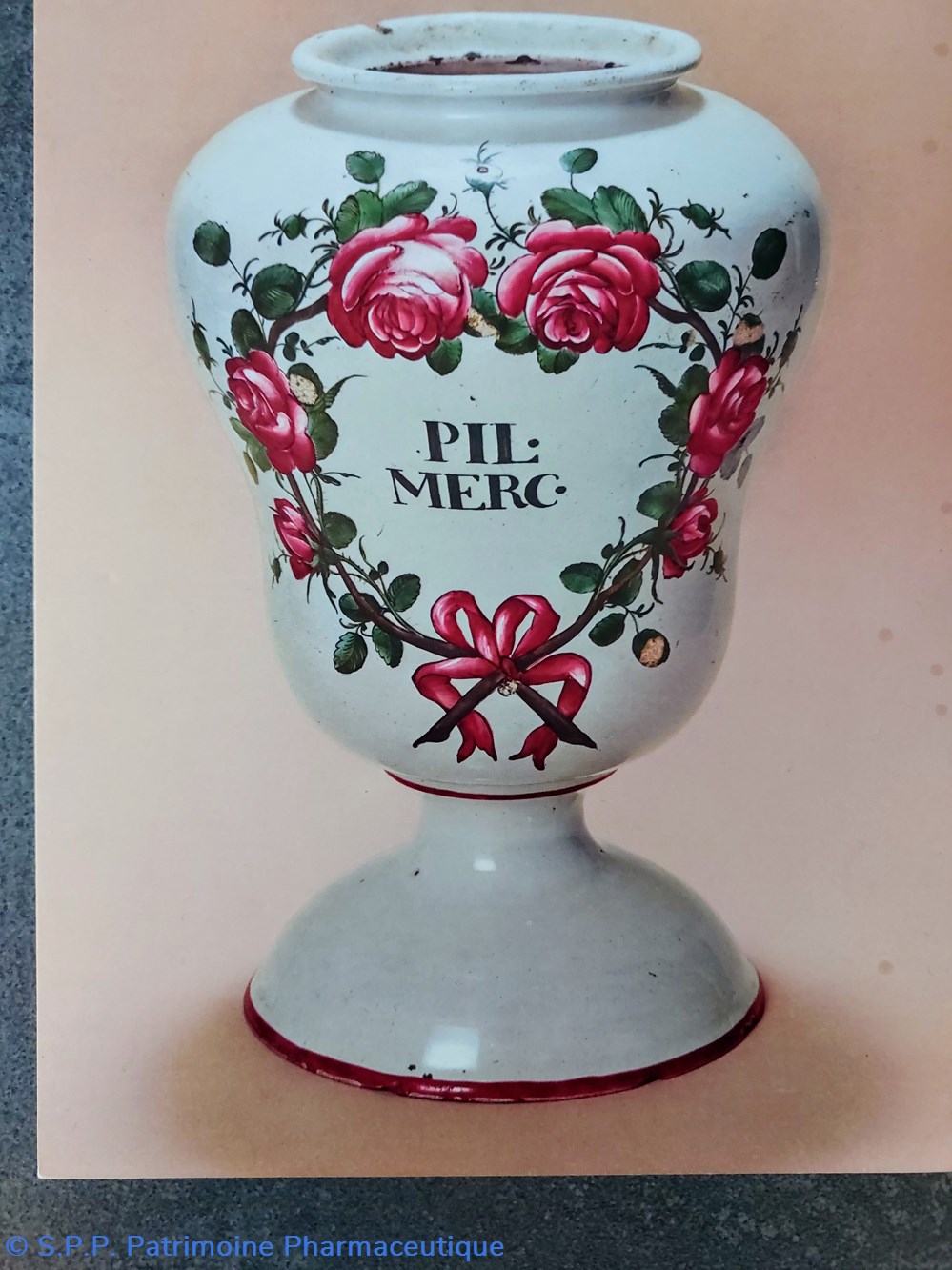 Au RECTO : Vase de Pharmacie sur piedouche Inscription Pil Merc- Faïence de St Clément fin XVIII siècle