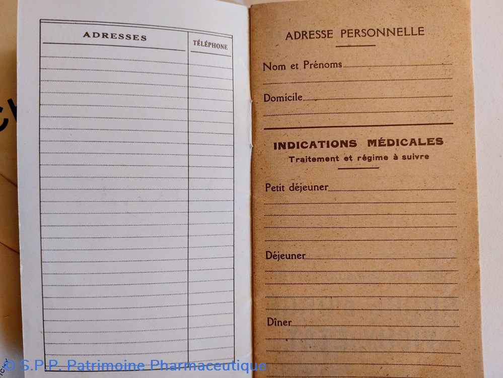 Petit agenda distribué par le pharmacien et servant à enregistrer les prescriptions, Indications médicales et autres données liées à la santé