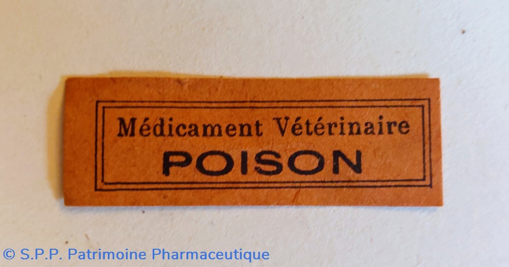 Parmi les étiquettes sans précision on trouve des étiquettes rondes diamètre 5 cm. Des étiquettes rectangulaires 4.5 * 2.5 - 4.5 *3 cm et une étiquette " POISON" Médicament vétérinaire.