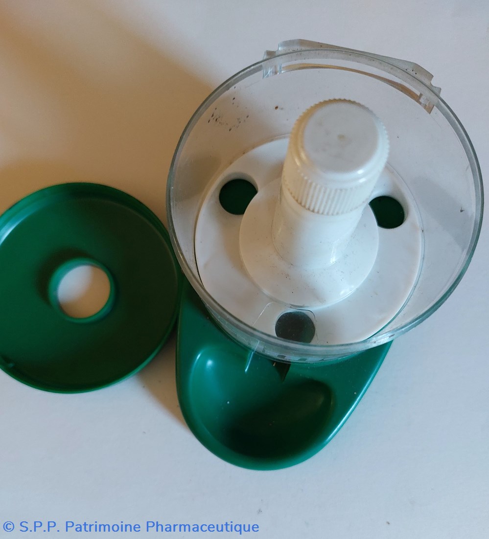 Le pharmacien remplissait le réservoir transparent ( on pouvait voir les pastilles) et la pastille était obtenue en tournant le bouton en partie supérieure.