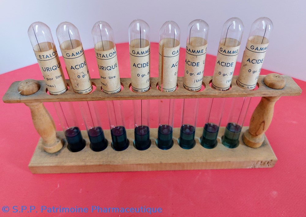 Support en bois de 8 tubes d'acide Urique pour mesurer le Glucose ( Gamme étalon de 0.20 à 0. 90)