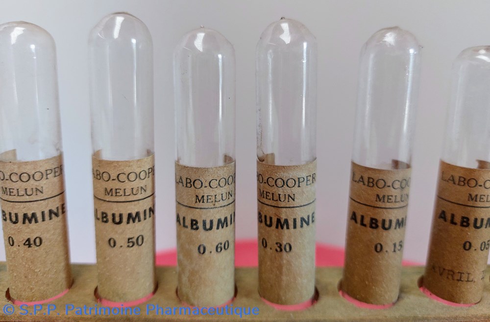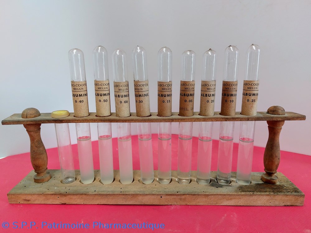 Support en bois de 10 tubes à essais dont 9 tubes d'Albuminimétrie + 1 tube pour l'analyse d'albumine