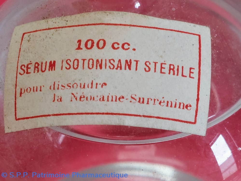 Ampoule de 100 cc de sérum isotonisant stérile pour dissoudre la Neocaïne - Surrénine