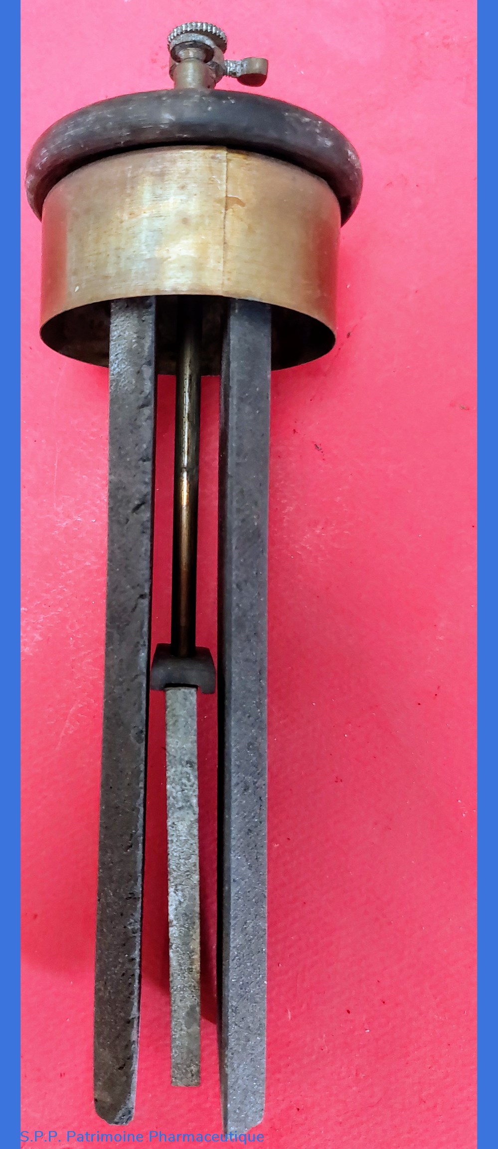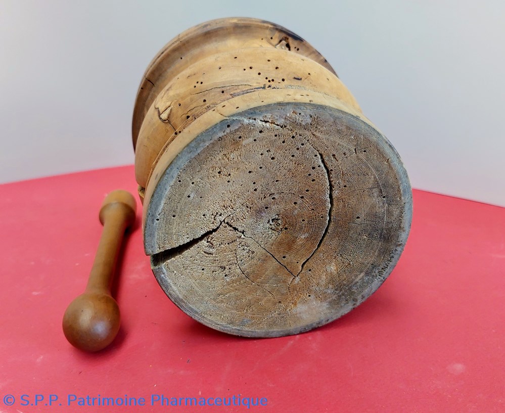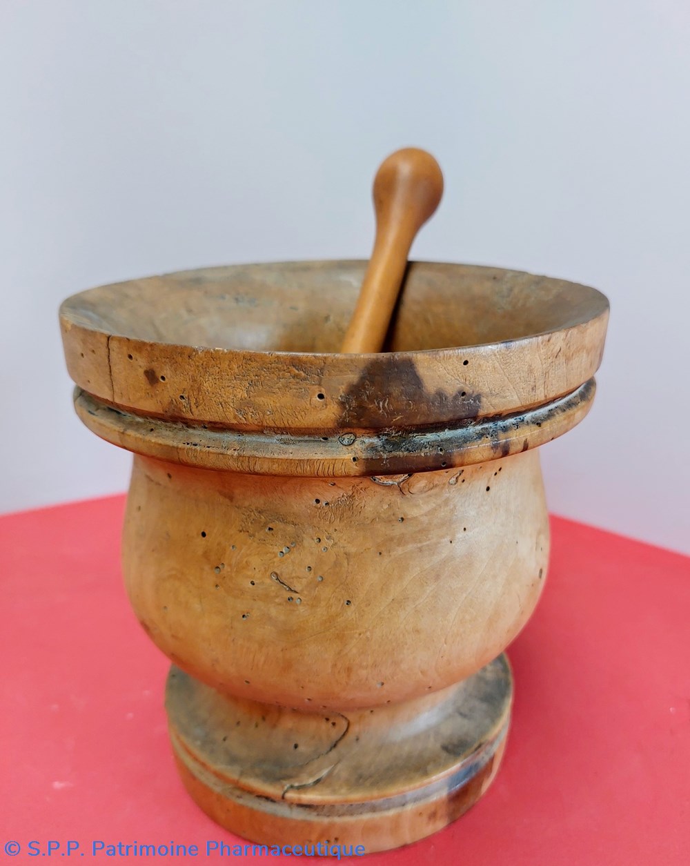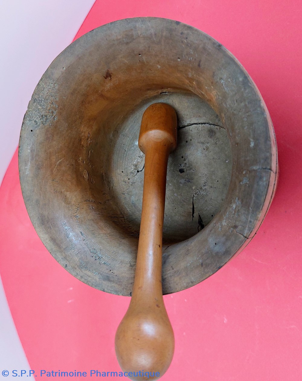 Le pharmacien utilisait un mortier et son pilon pour piler, broyer ou homogénéiser divers produits de la pharmacopée en vue de préparations pharmaceutiques.
