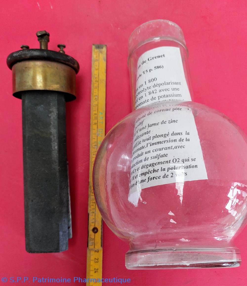 Flacon en verre ( pile bouteille) avec son dispositif :