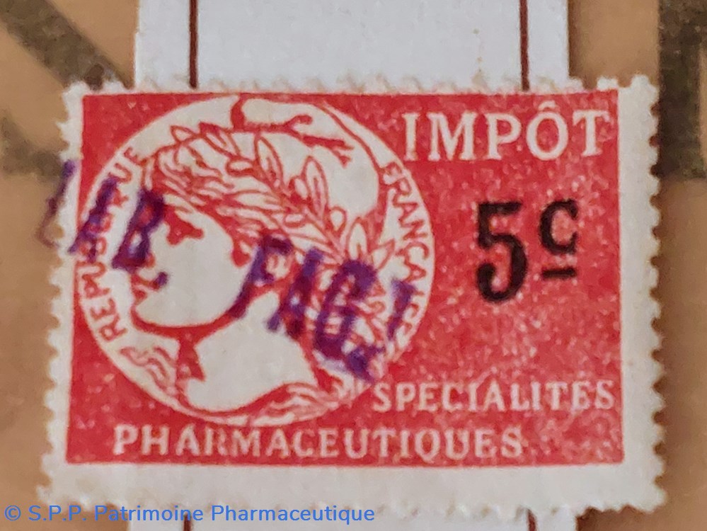 Timbre fiscal de 5 C. / Impôt Spécialités Pharmaceutiques