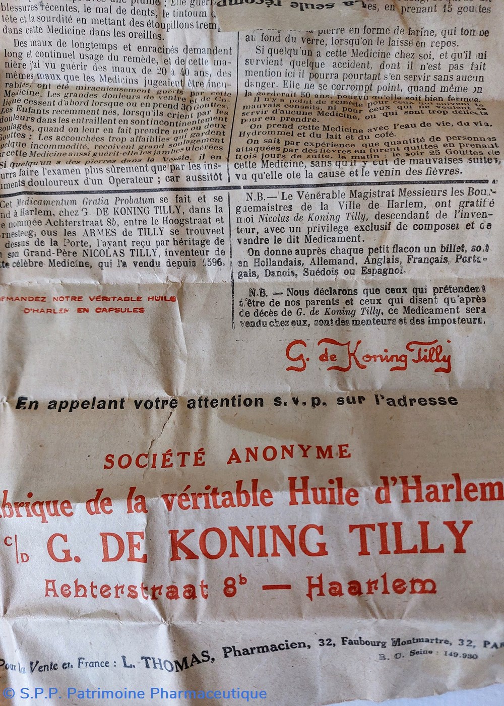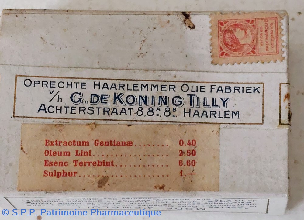 Fabrique de la véritable Huile d'Harlem c/ G. De KONING TILLY à HARLEM.
