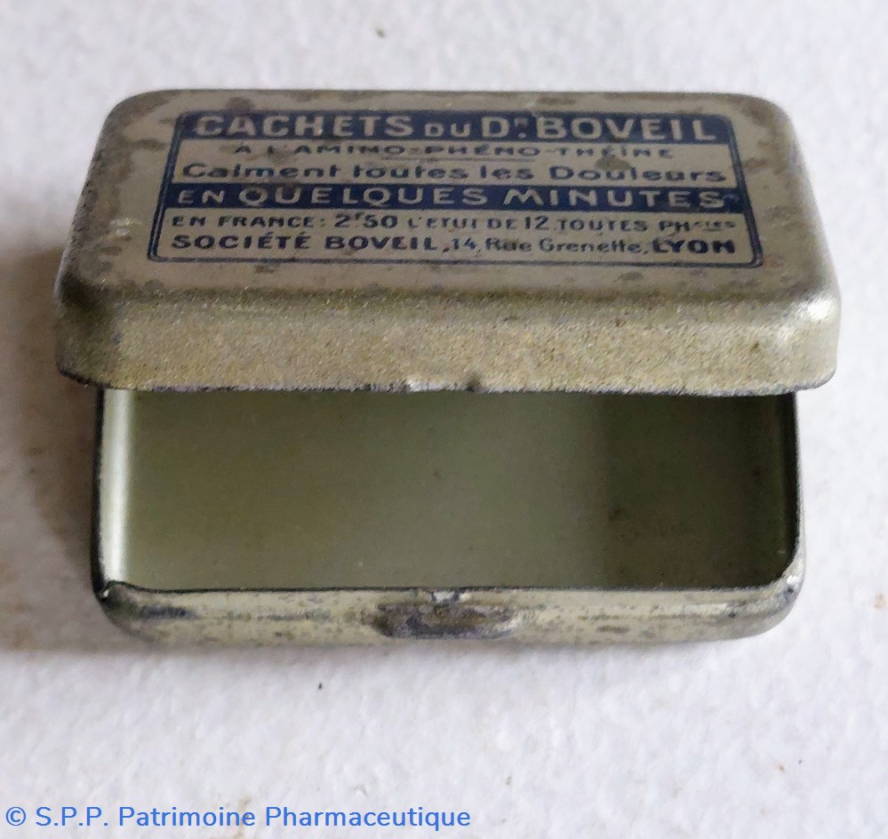 Petite boîte métallique de poche 4.5 *3,5 *1 cm ayant contenu des CACHETS du Dr BOVEIL