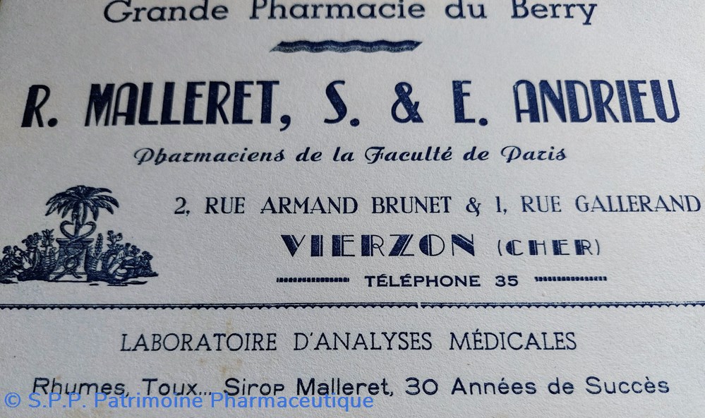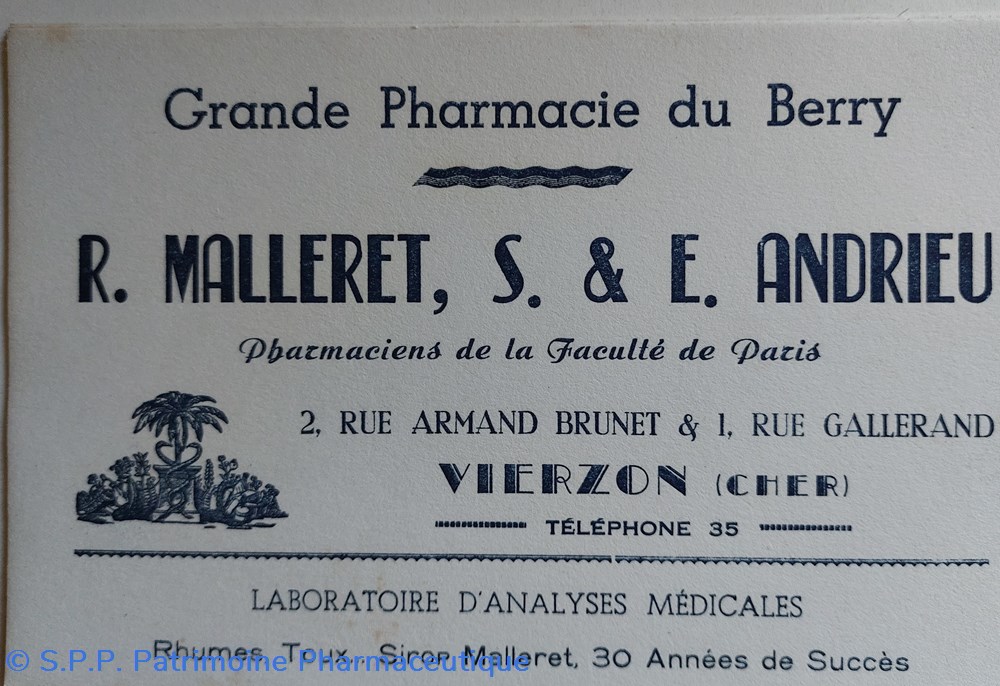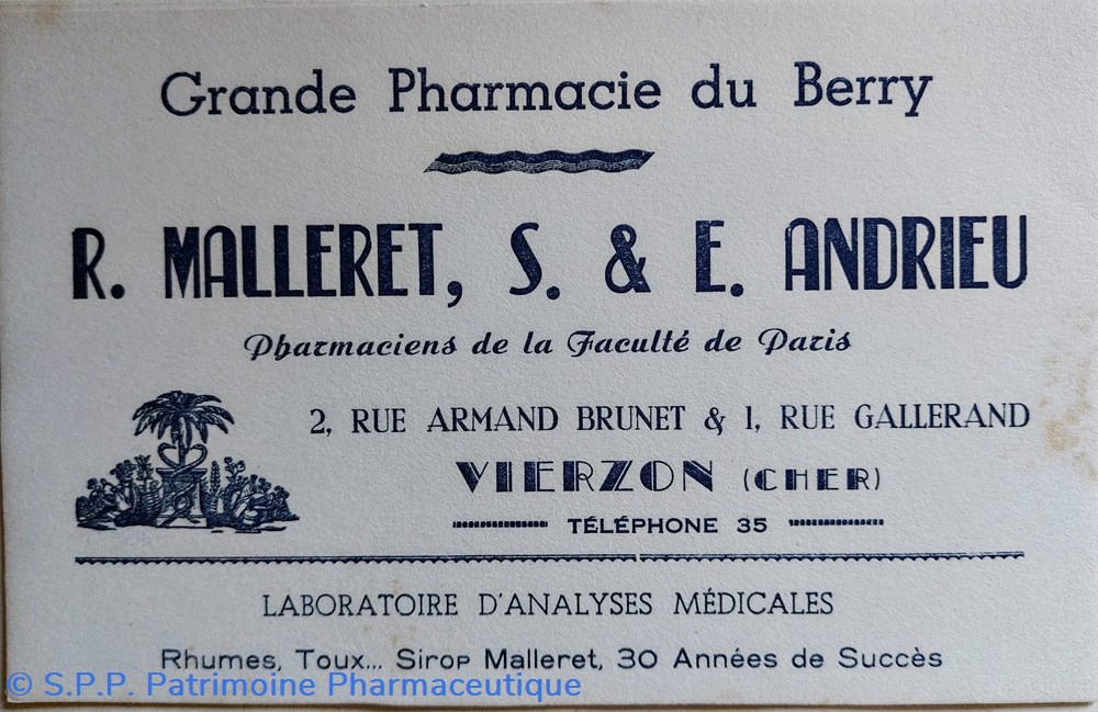 Grande Pharmacie du Berry à Vierzon - R.Malleret, S. et E. Andrieu