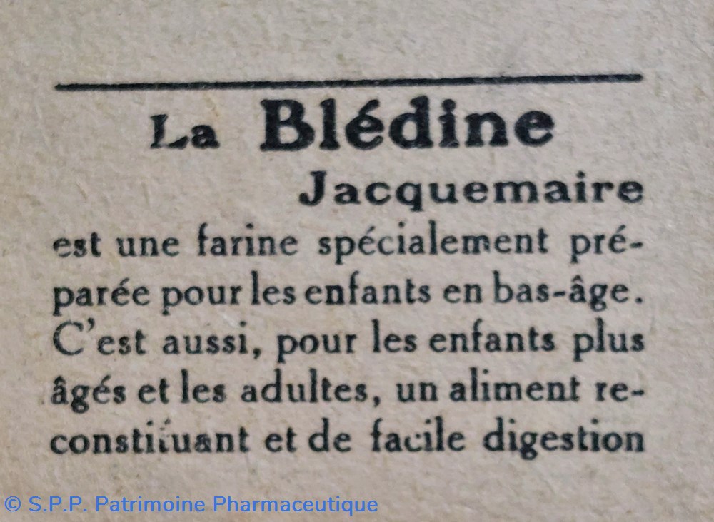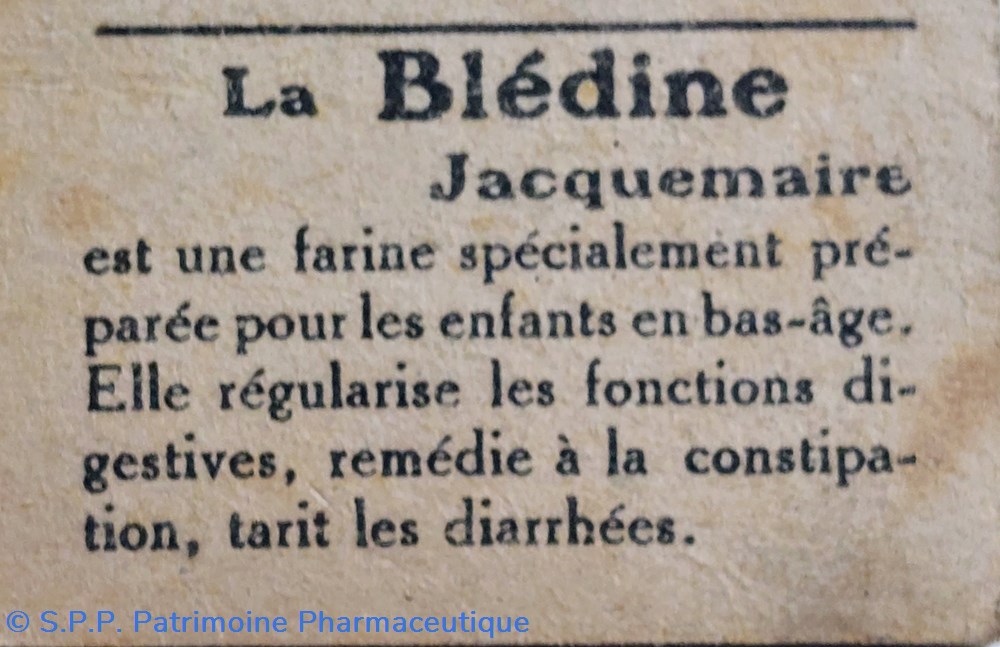 BLEDINE un produit Jacquemaire qui régularise les fonctions digestives, remédie à la constipation et tarit les diarrhées.