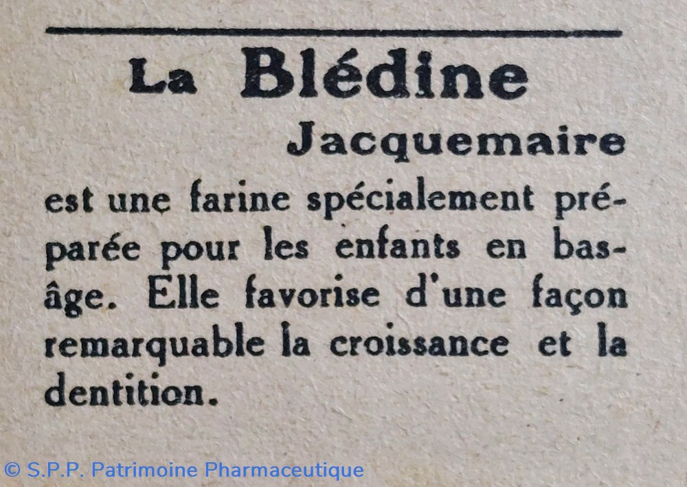 BLEDINE un produit Jacquemaire qui favorise d'une façon remarquable la croissance et la dentition.