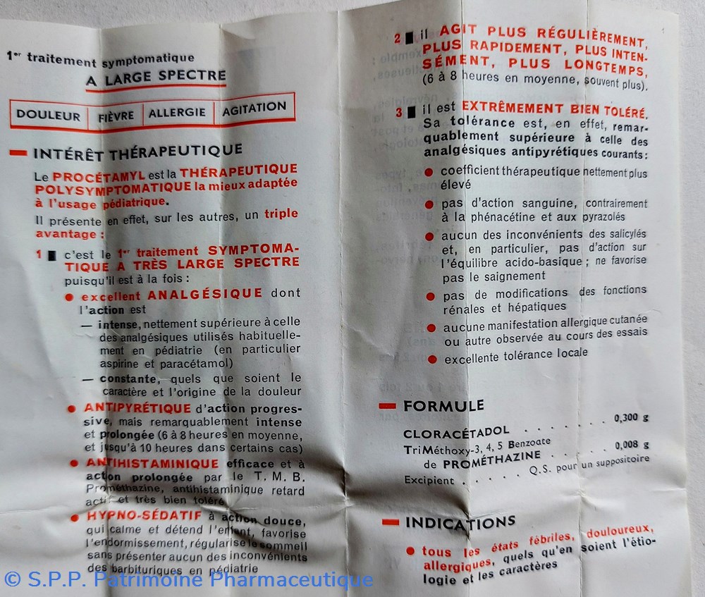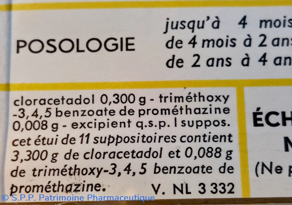 Formule : Cloracétadol et TriMéthoxy- 3,4,5 Benzoate de PROMÉTHAZINE