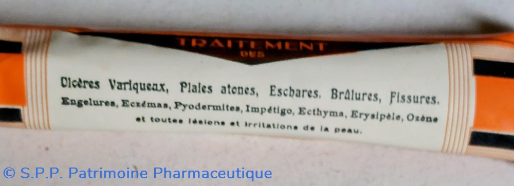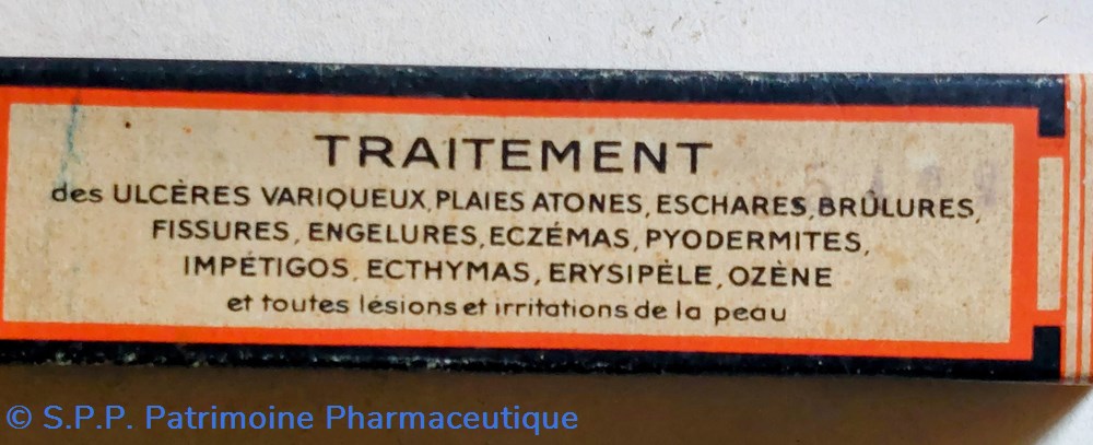 Formule Chlorure d'Acétylcholine Methanoale d'isobornyle Para - aminobenzoate de butyle normal Ichthyolsulfonate d'amoniaque Oxyde de ? et Oxyde de zinc.