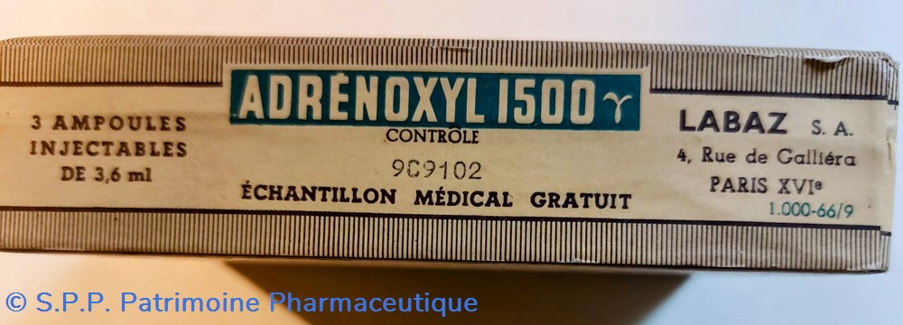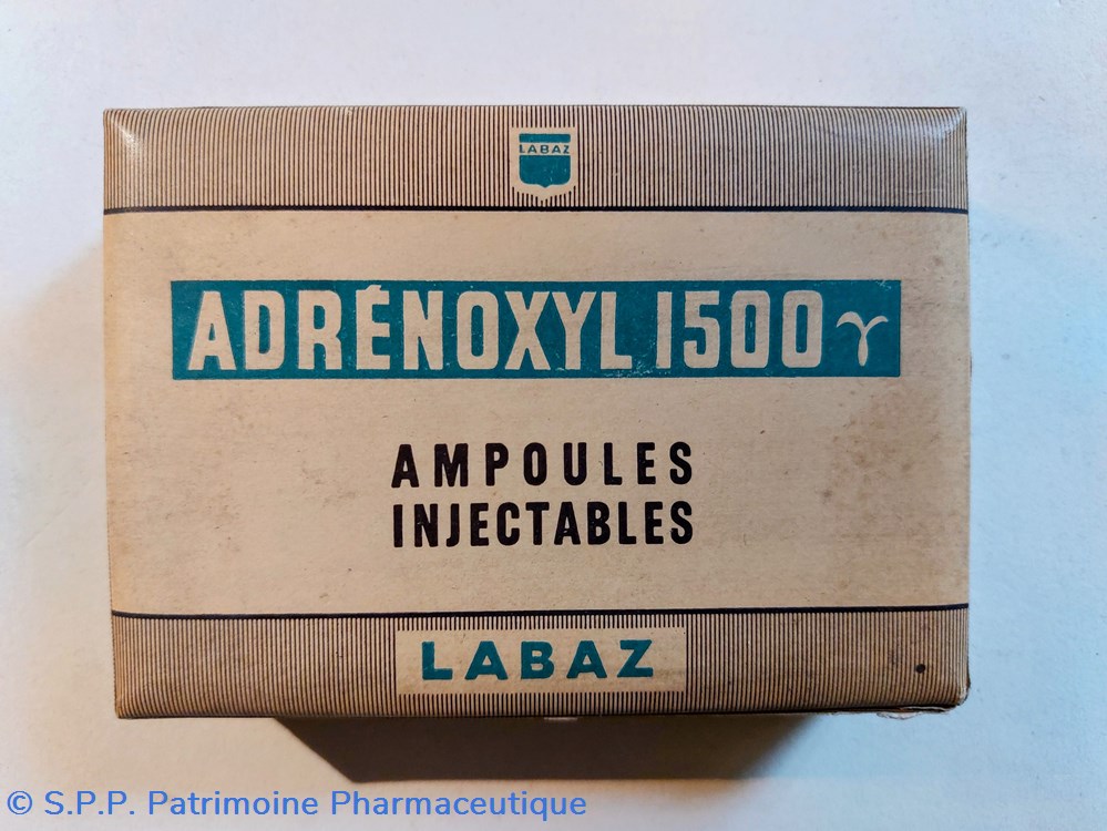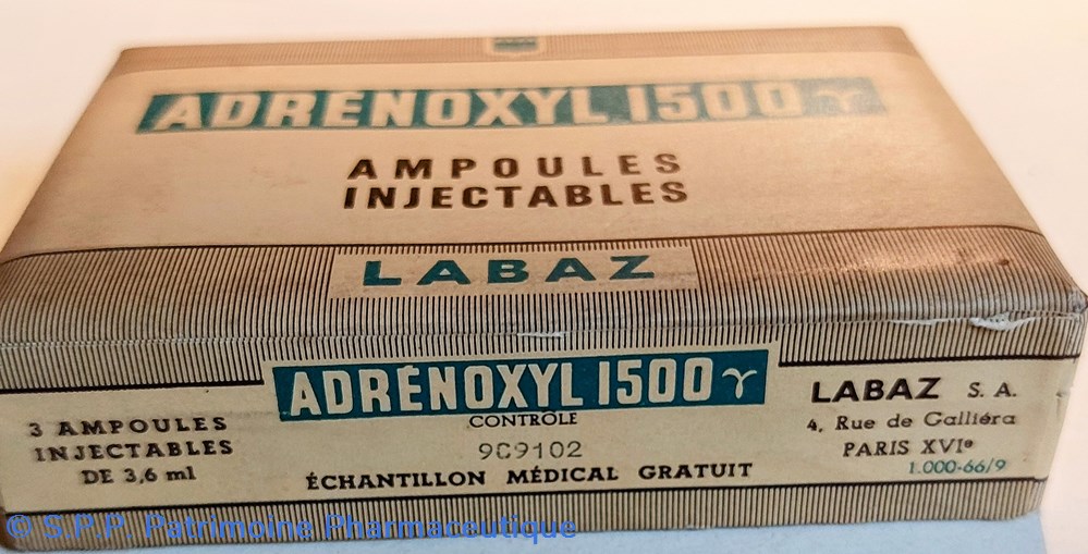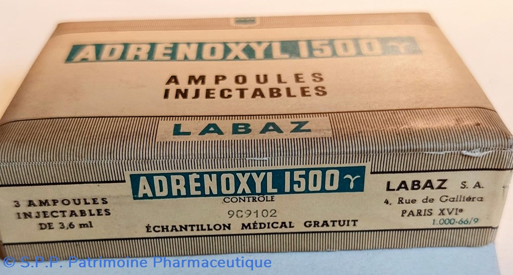 Coffret en carton 12*8 *2,5 cm scellé d'origine contenant 3 ampoules injectables D'ADRÉNOXYL 1500 de 3.6 ml.
