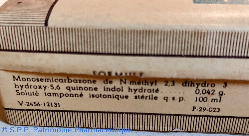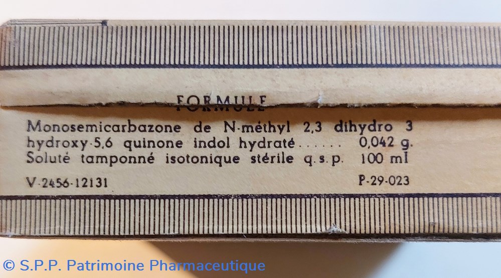 Monosemicarbazone de N methyl 2.3 dihydro 3 hydroxy 5.6 quinone indol hydraté 0.042 g. Soluté Tamponné isotonique stérile qsq