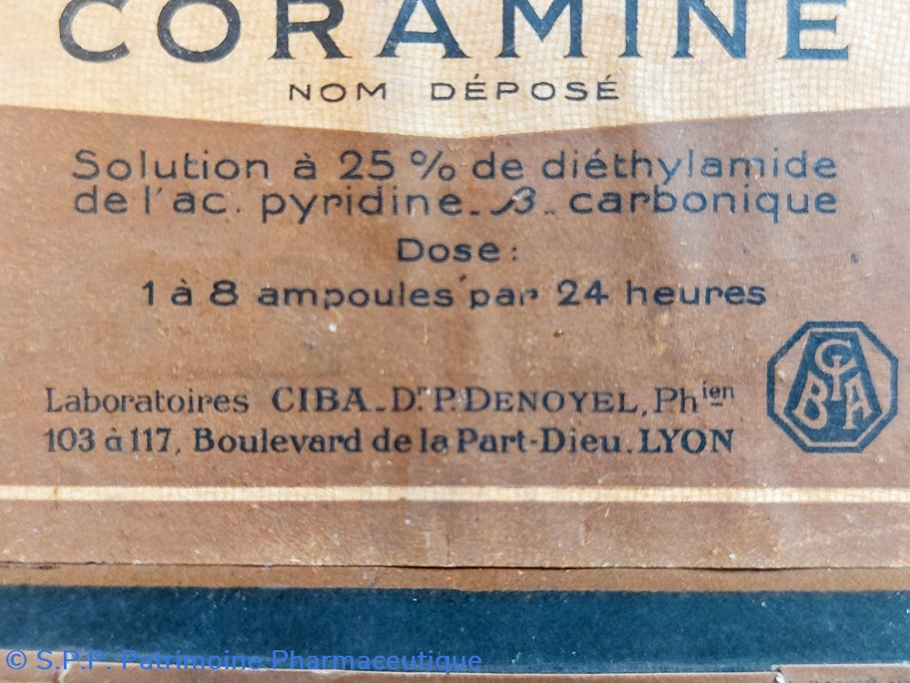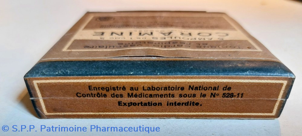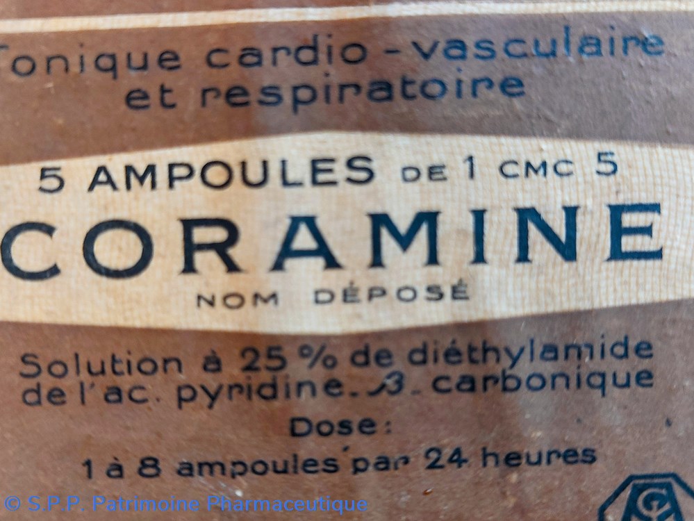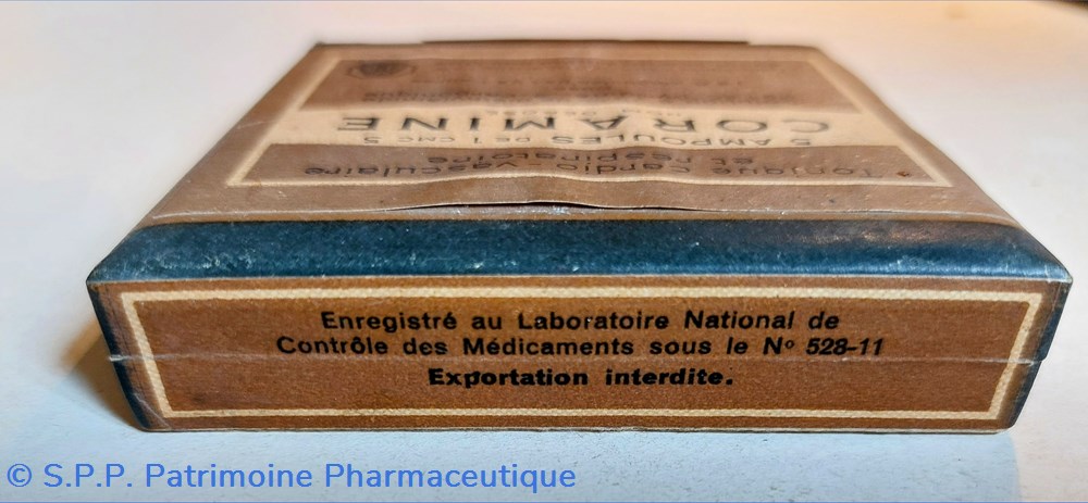 Coffret en carton scellé d'origine 8.5*8,5 *2 cm contenant 5 ampoules de 1 cmc CIBA CORAMINE