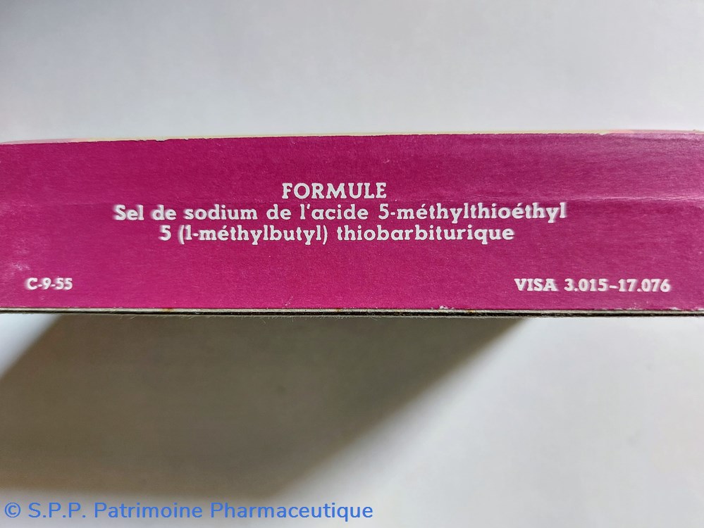 Formule : Sel de Sodium de l'acide 5 - methylthioethyl 5 thio barbiturique.