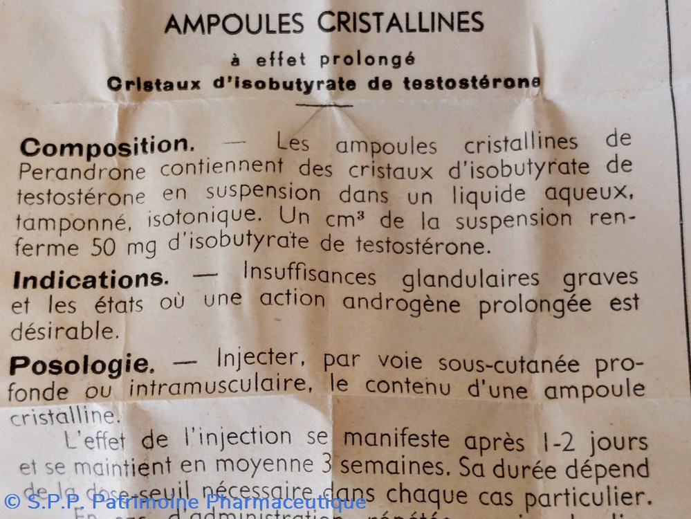 Contenant des cristaux d'Isobutyrate de Testostérone dans un liquide aqueux.