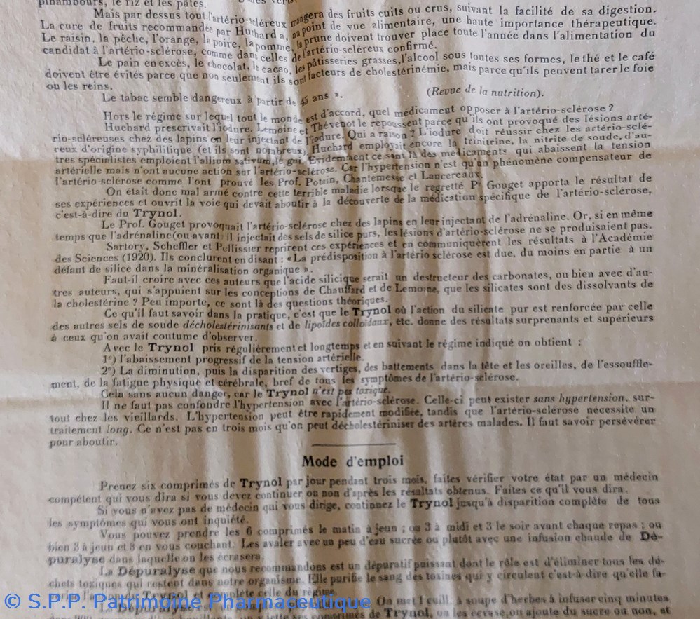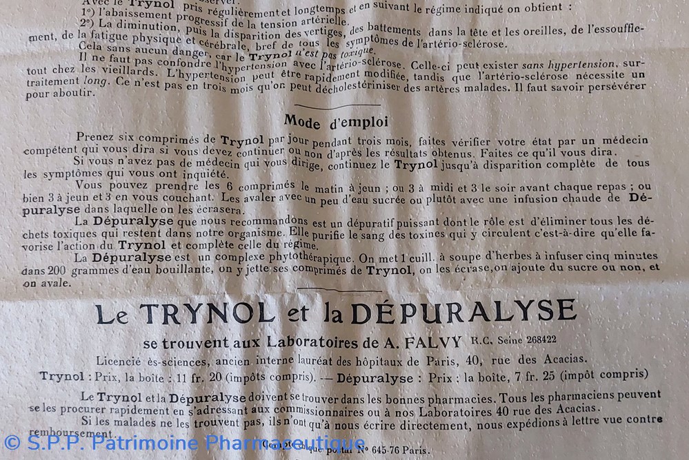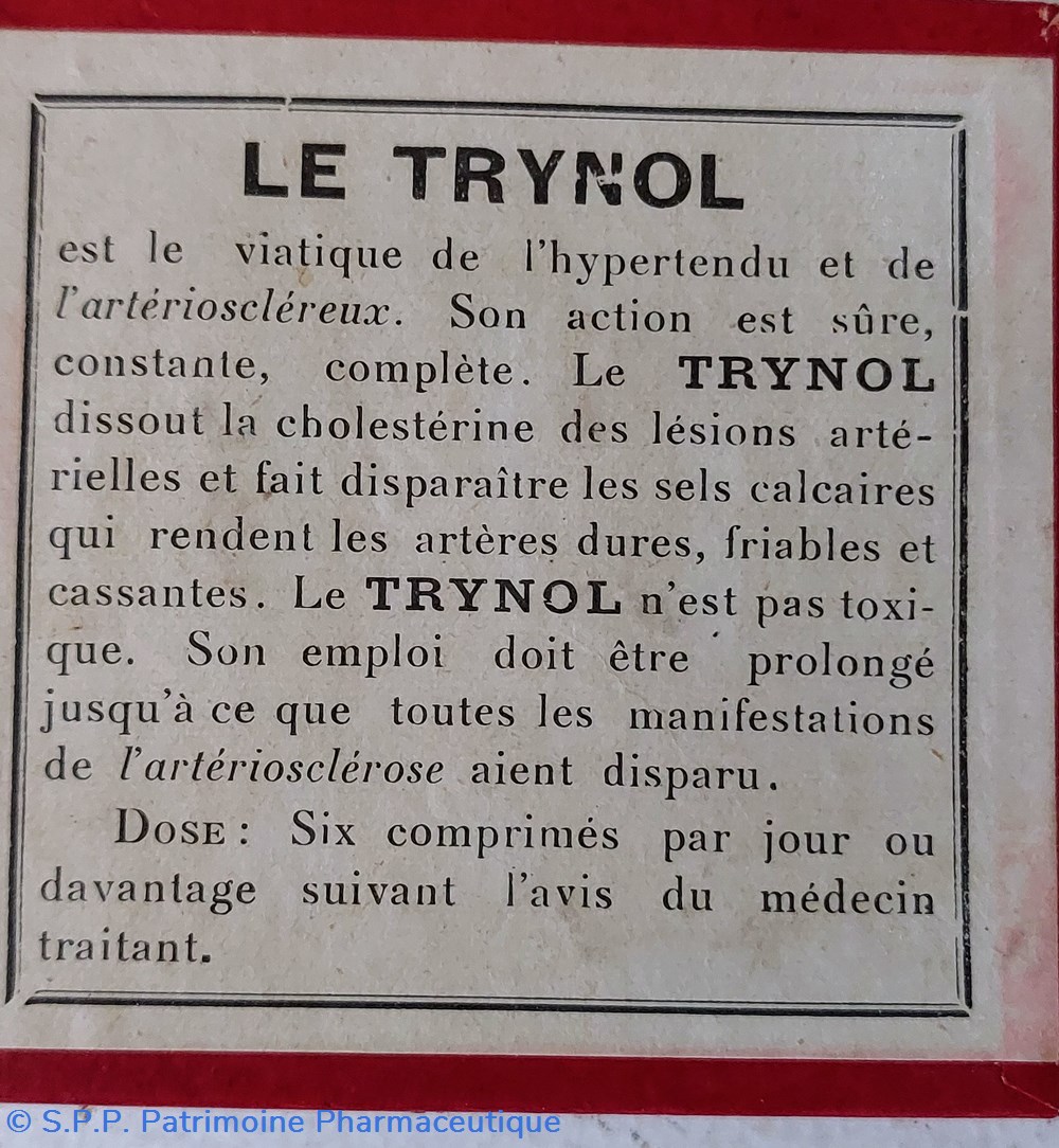 Comprimés TRYNOL pour" Abaissement de la tension artério - sclérose et diminution et disparition des vertiges et autres symptômes de l'artério - sclérose "