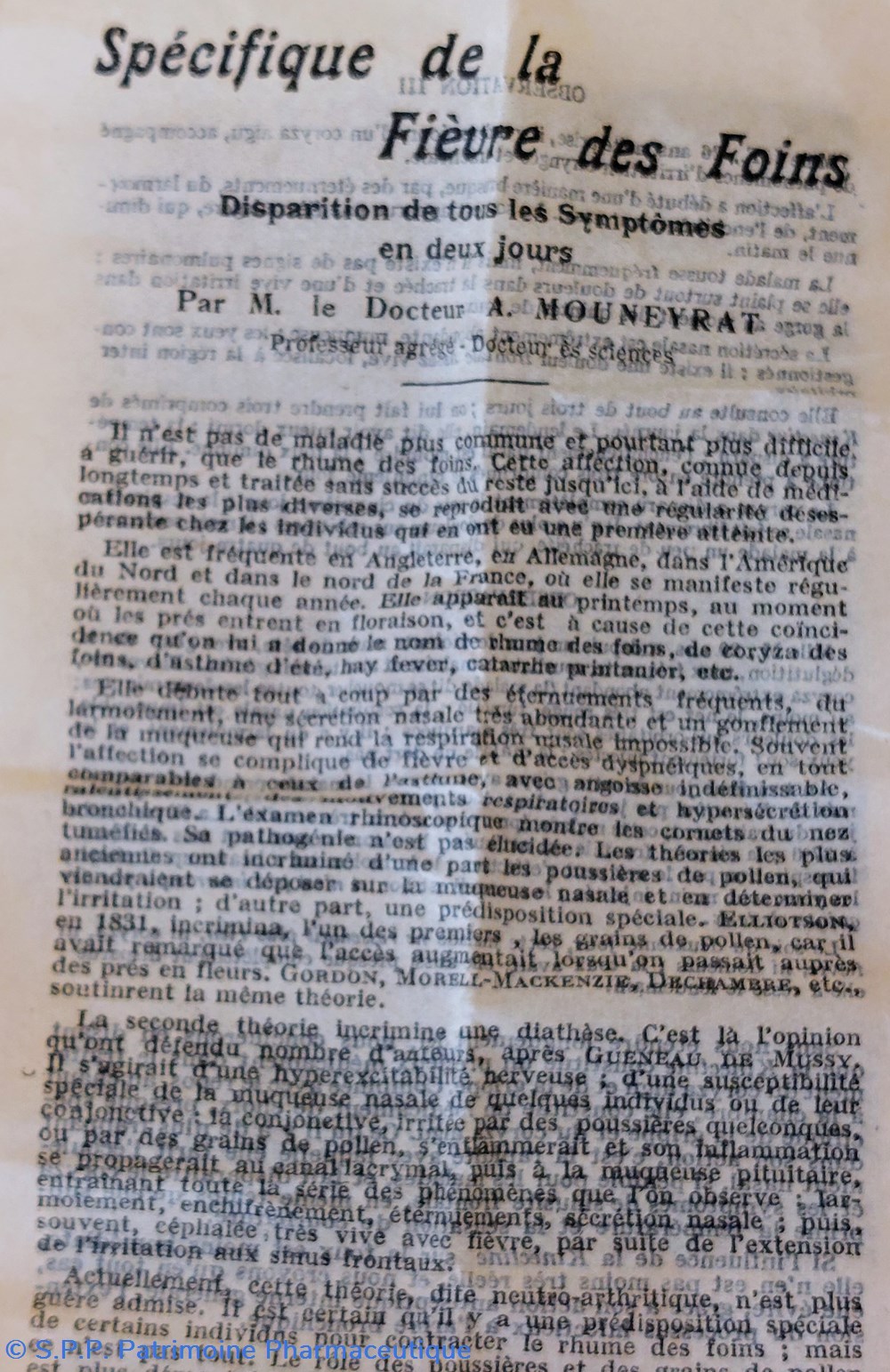 Contre Coryza Rhume de cerveau, Grippe, Fièvre des foins, Bronchite catarrales.