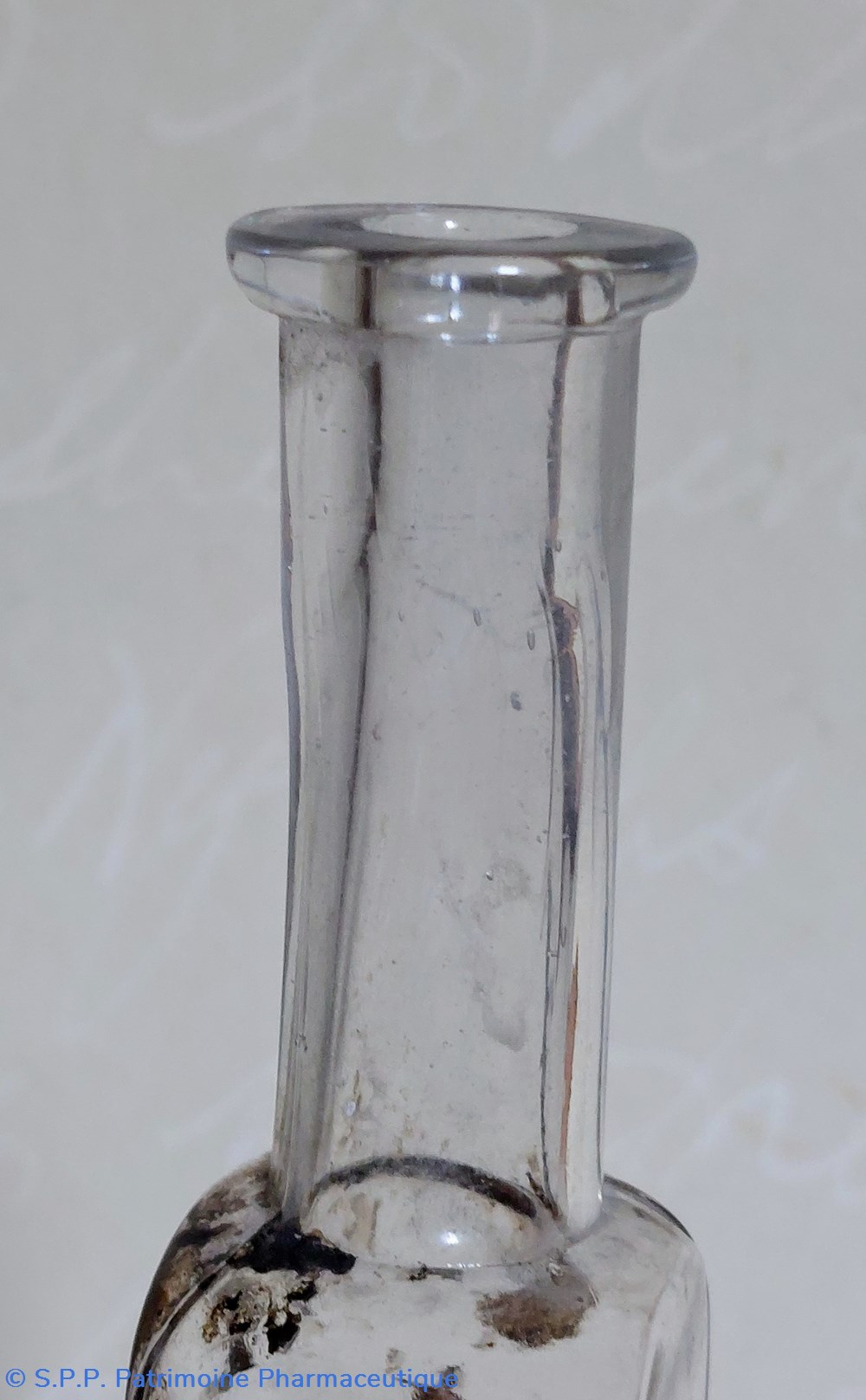 Le haut du goulot est plat son diamètre intérieur est de 1 cm, l'extérieur est de 2.8 cm.