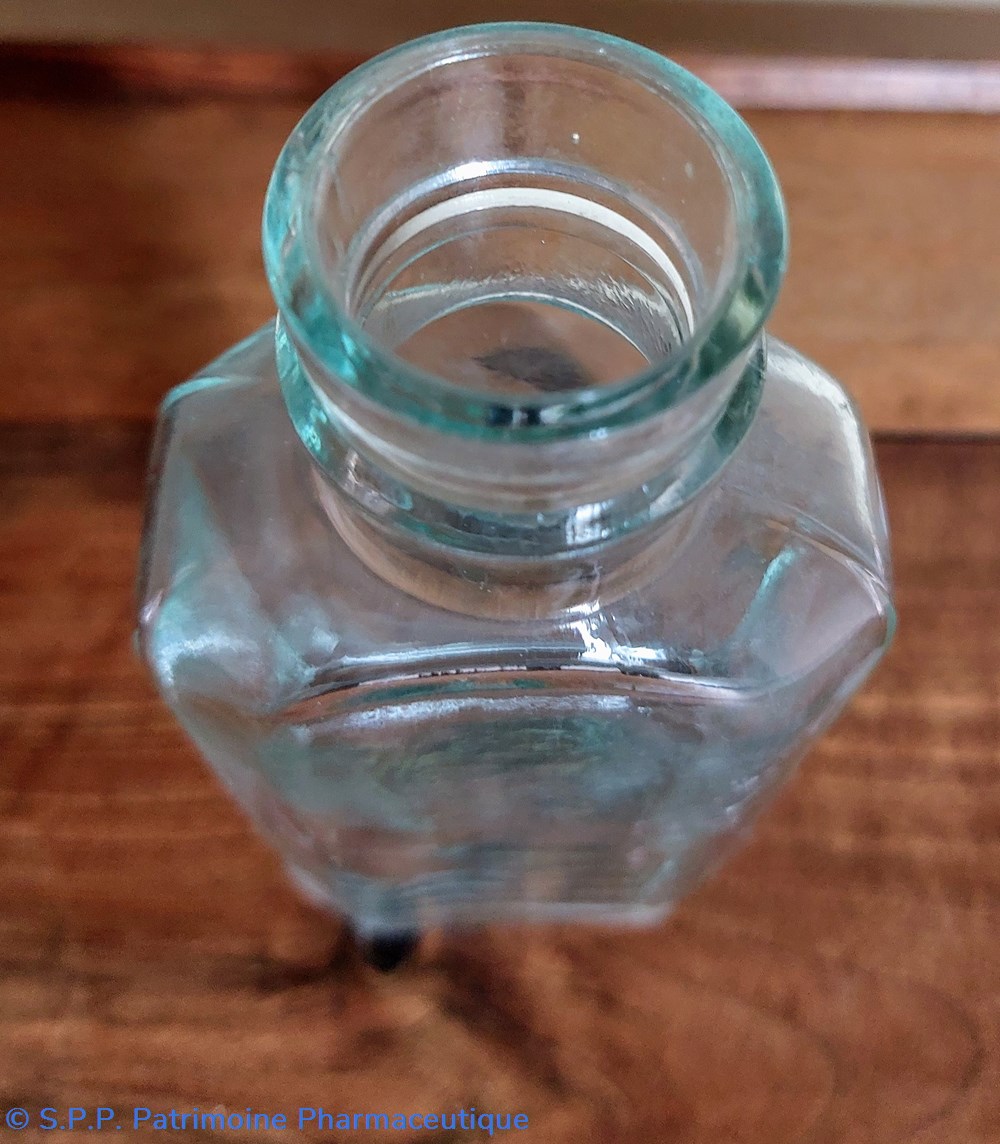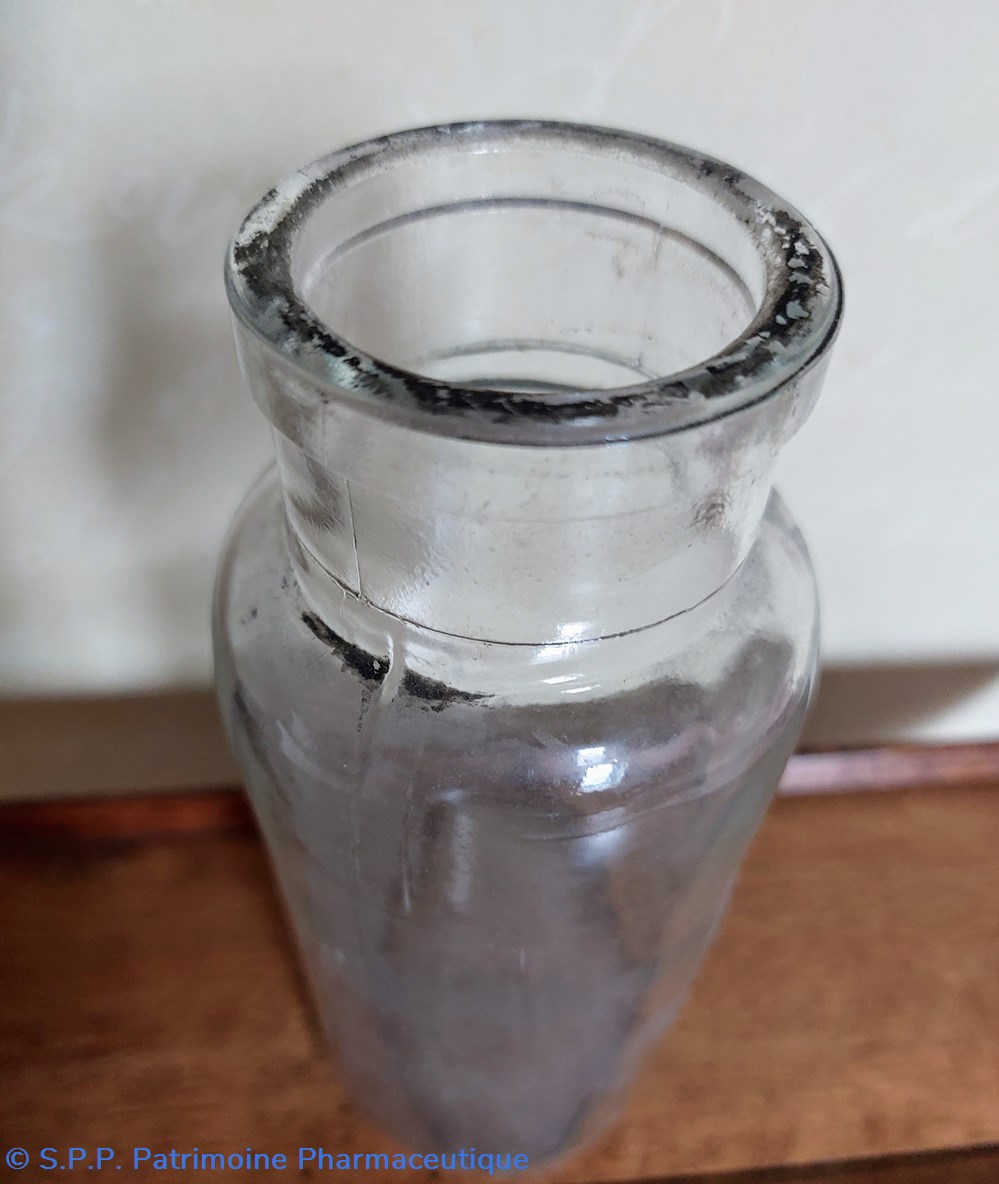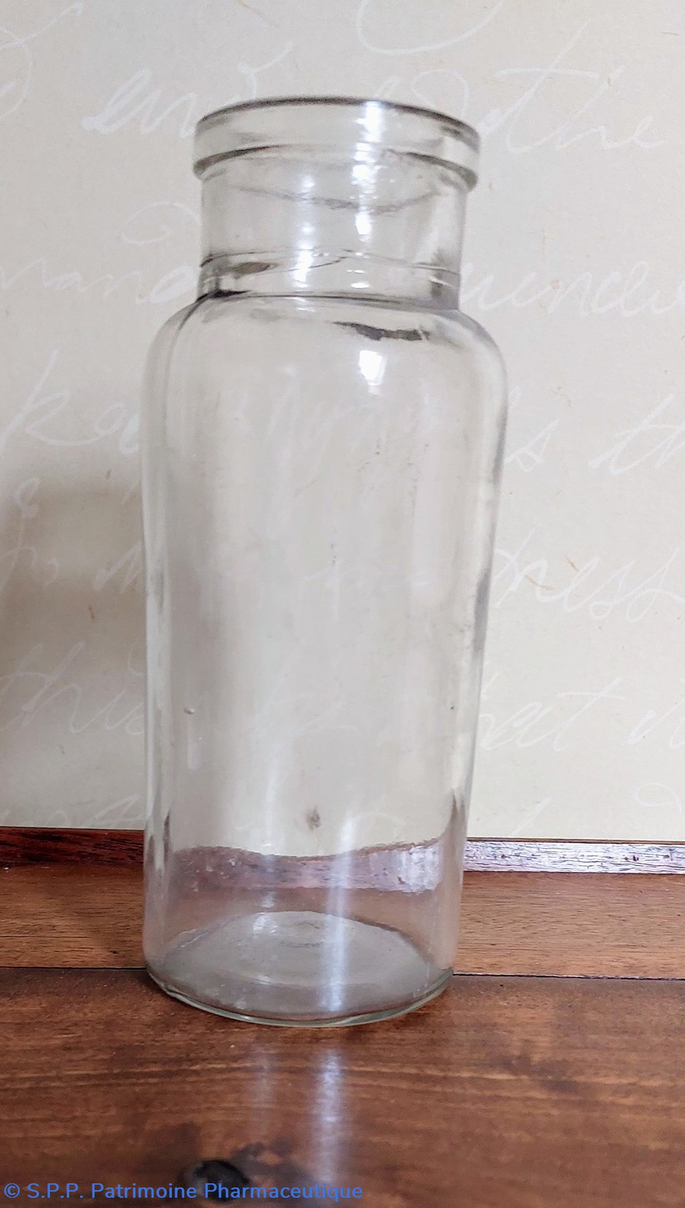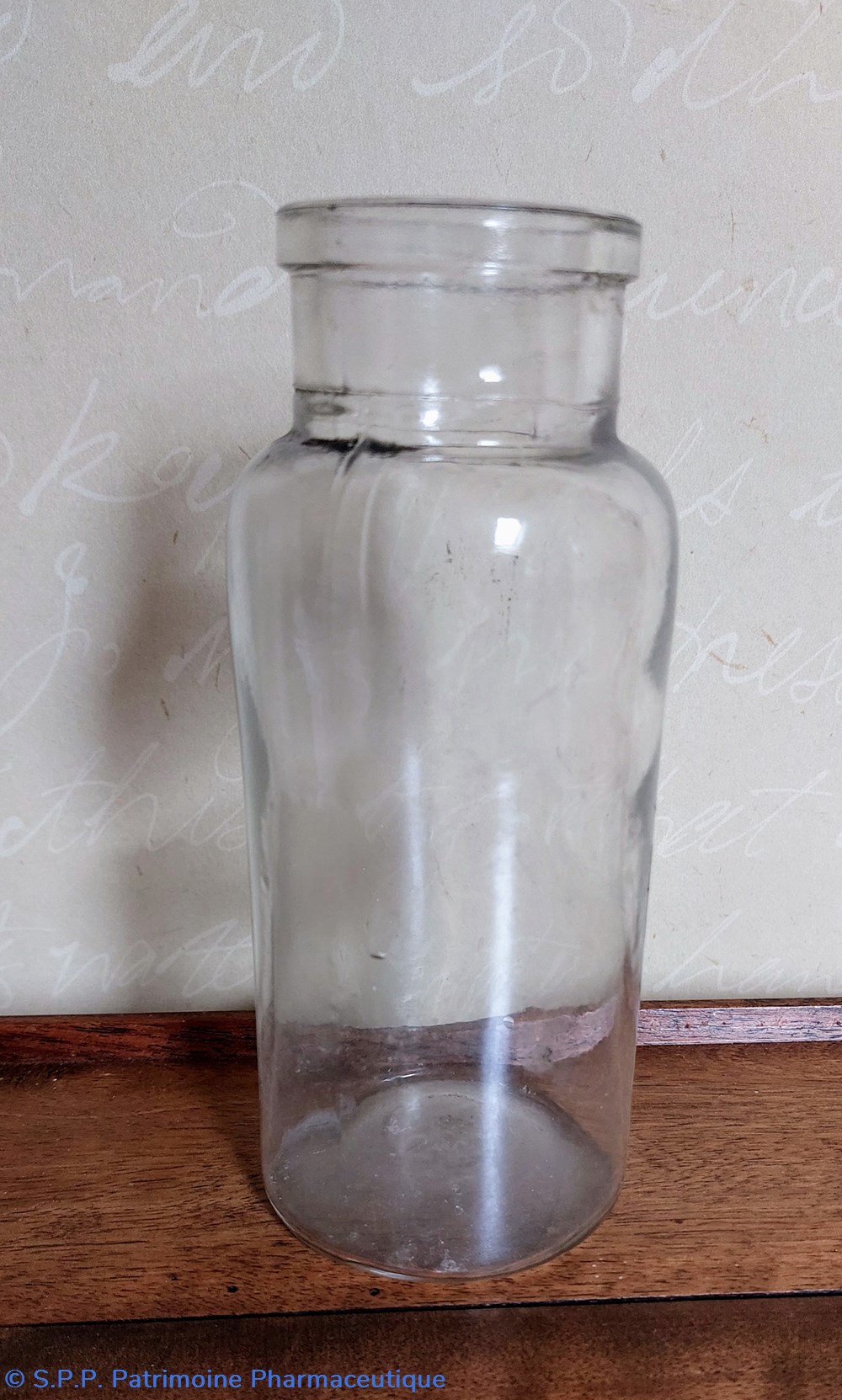 Ancien bocal en verre transparent col large de 4 cm d'ouverture Hauteur totale 17 cm dont un col de 3 cm Diamètre de la base 7 cm